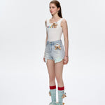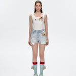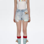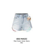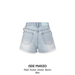13DE MARZO | 2504 Plaid Pocket Denim Shorts Blue