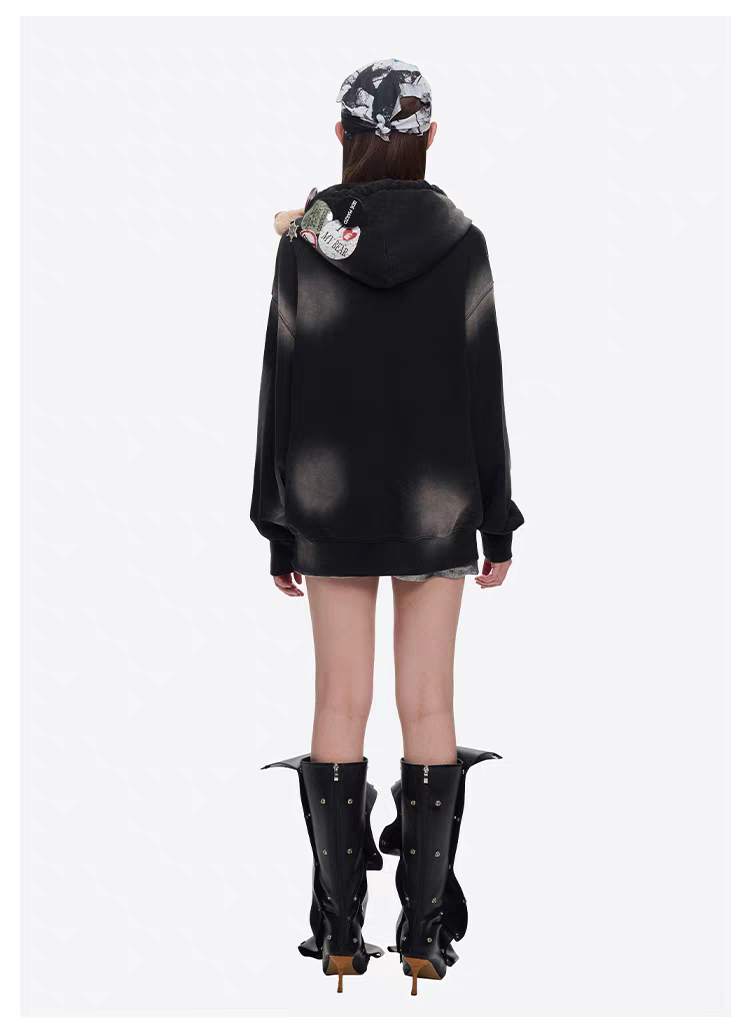 13DE MARZO | 2509 Badge Retro Hoodie Black