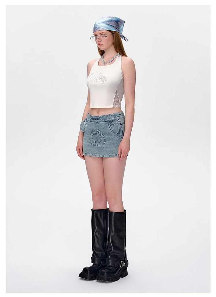 13DE MARZO | 2510 Bear Face Denim Skirt Blue