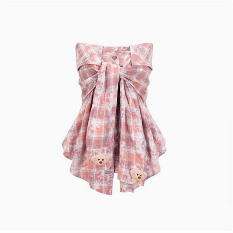 13DE MARZO | 2510 Plaid Shirt Knot Tube Top Red
