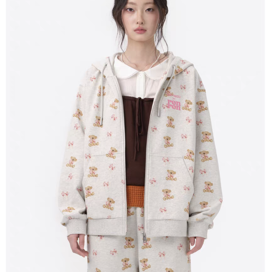 13DE MARZO | 2510 RONRON Bear All-Over Zipped Hoodie Gray