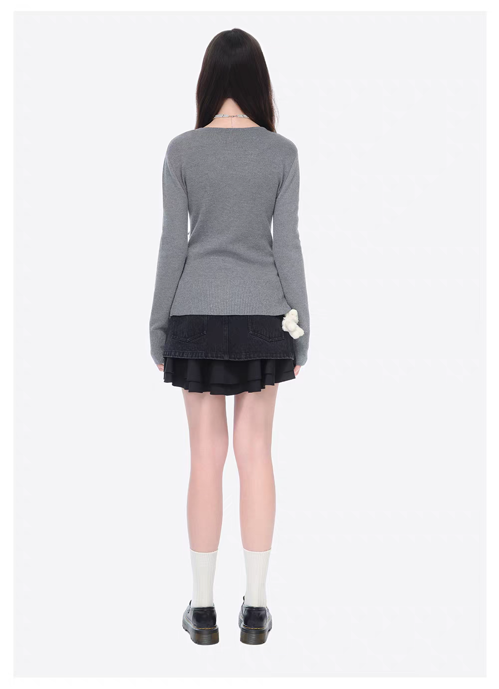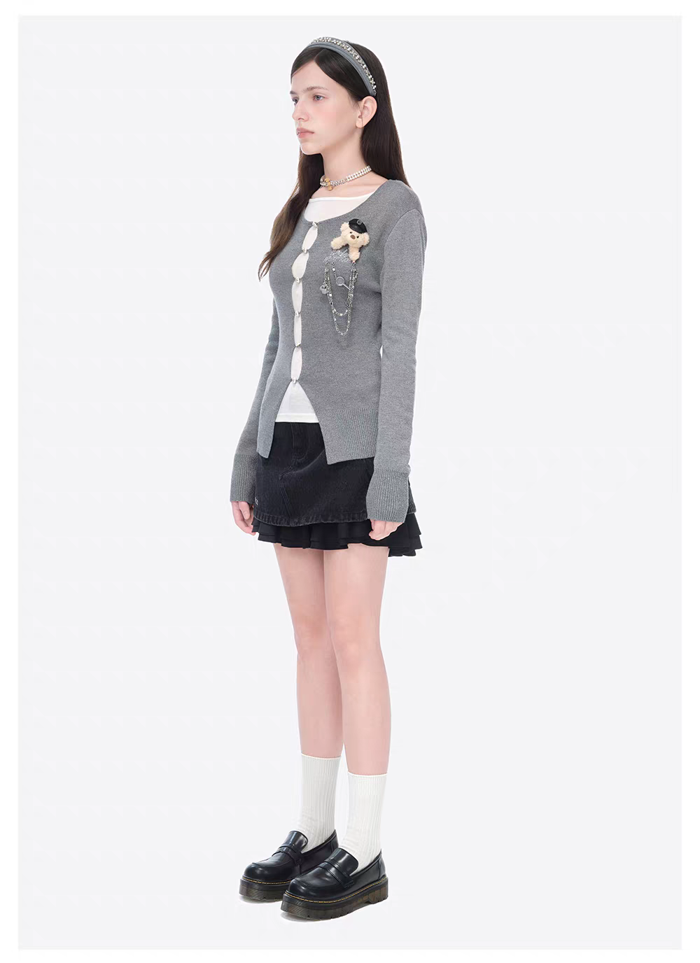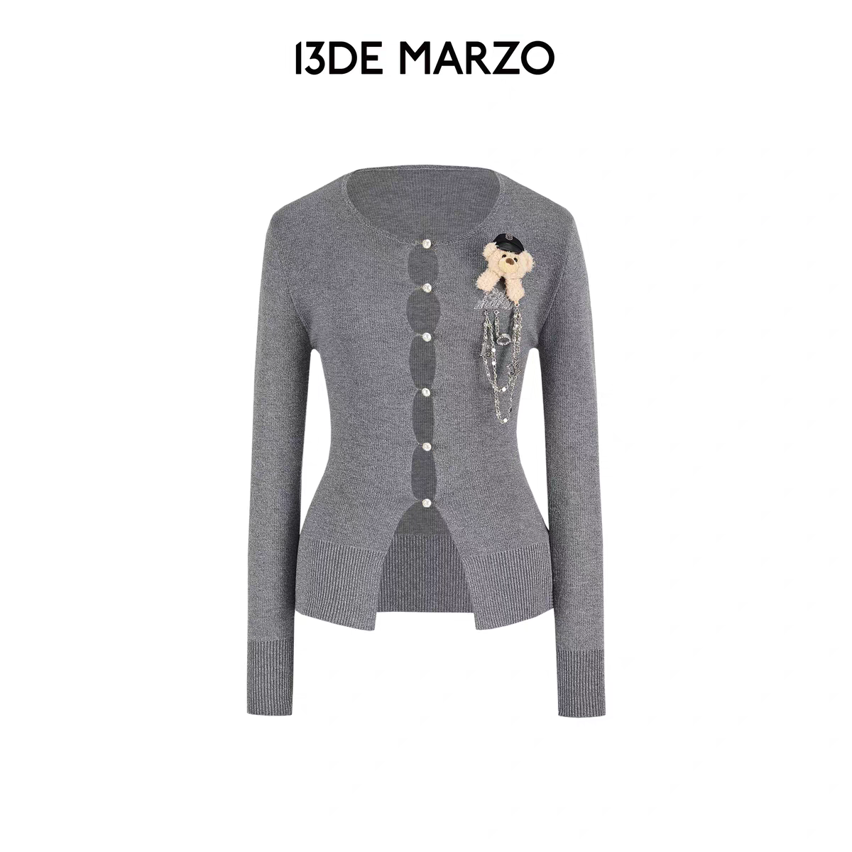 13DE MARZO | 2602 Sparkle Pearl Chain Cardigan Dark Grey