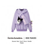 13DE MARZO | SS2402 Kuromi Bear Scarf Fleece Hoodie