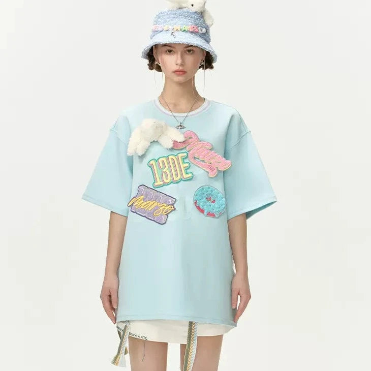 13DE MARZO | SS2403 Badges Velcro T-shirt Wathet Blue