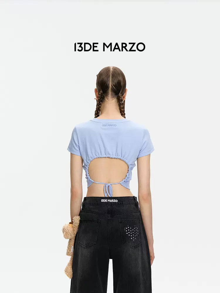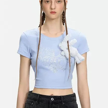13DE MARZO | SS2404 Rhinestone Heart Logo Tee Violet