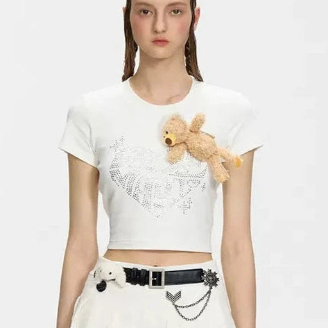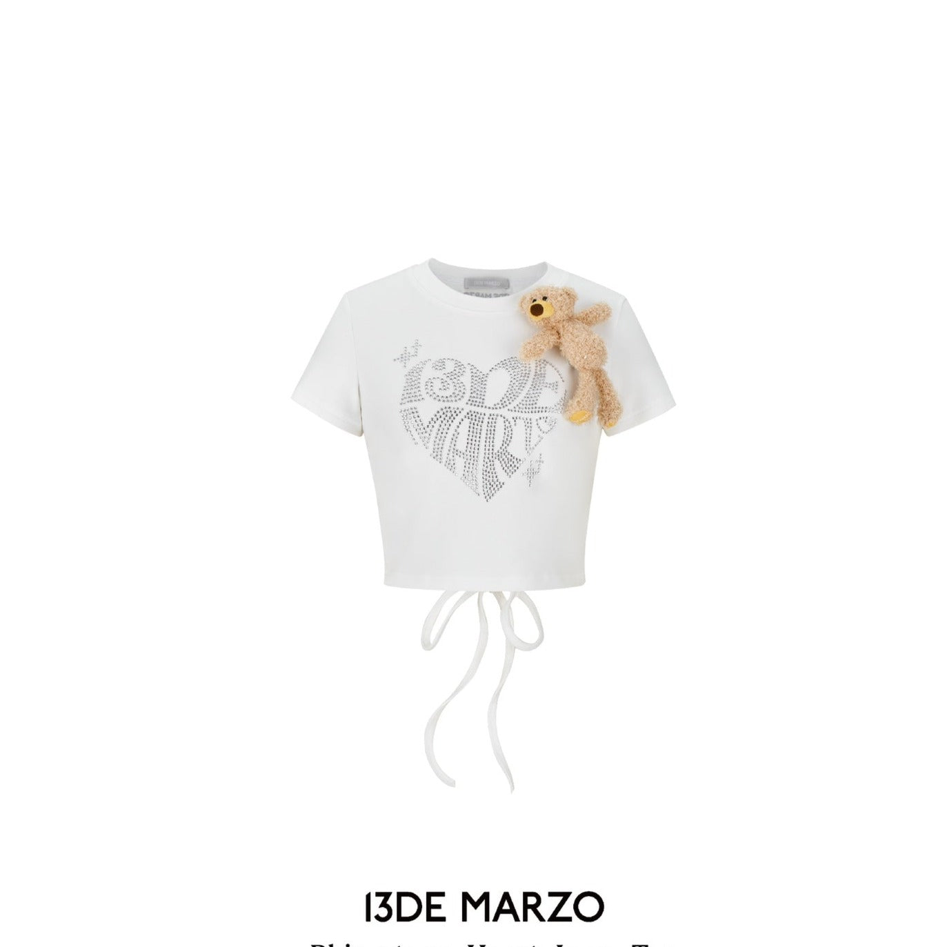 13DE MARZO | SS2404 Rhinestone Heart Logo Tee White