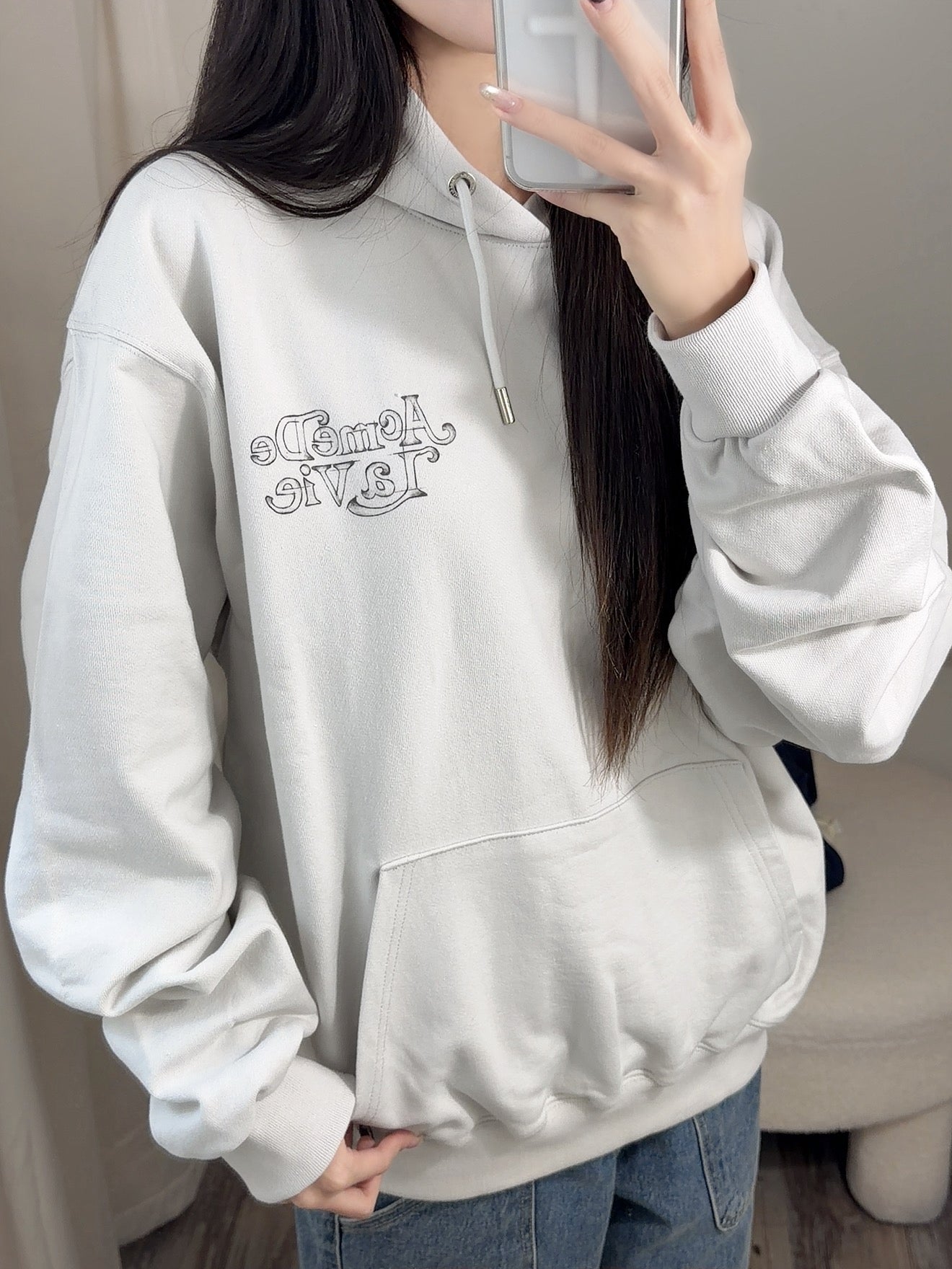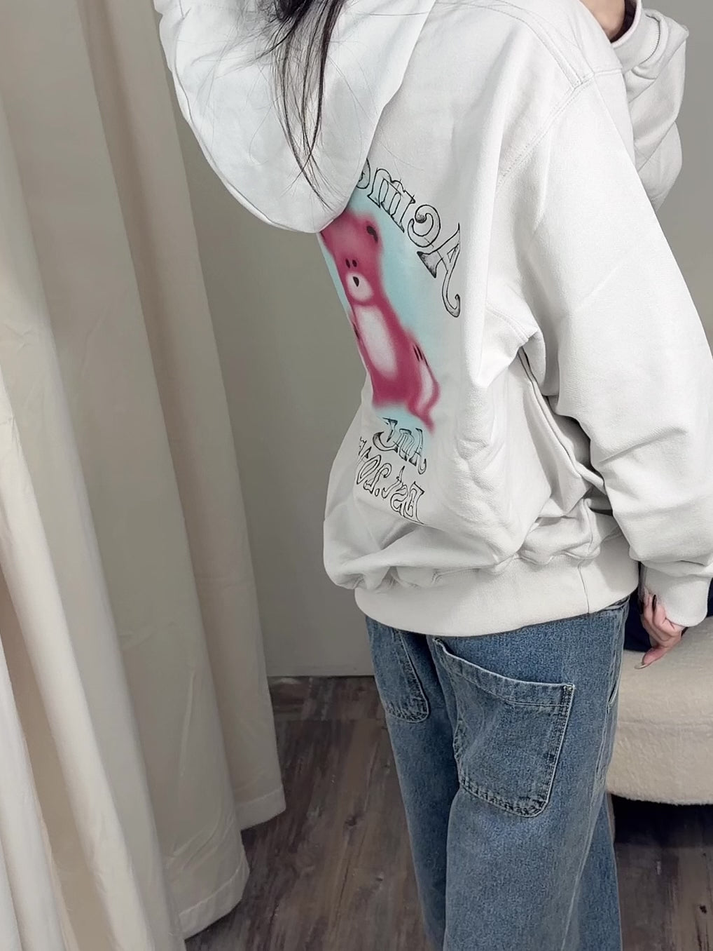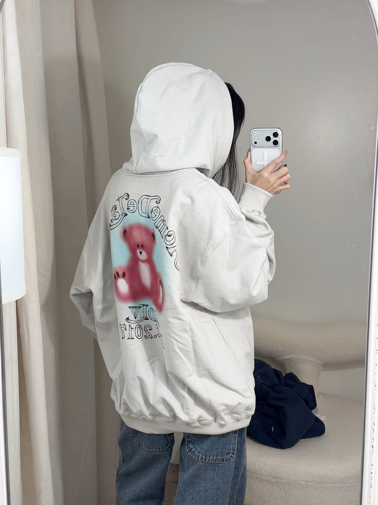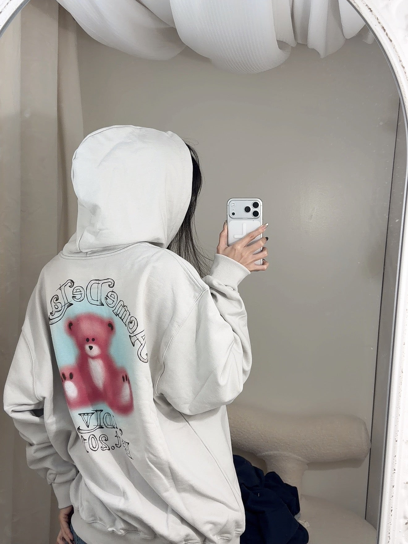 ADLV 2512 模糊素描熊连帽衫 灰