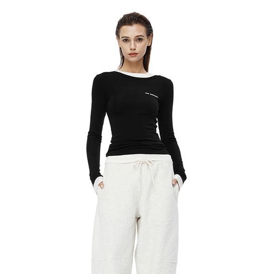 ANN ANDELMAN 2409 双领修身打底衫女长袖T恤 黑白