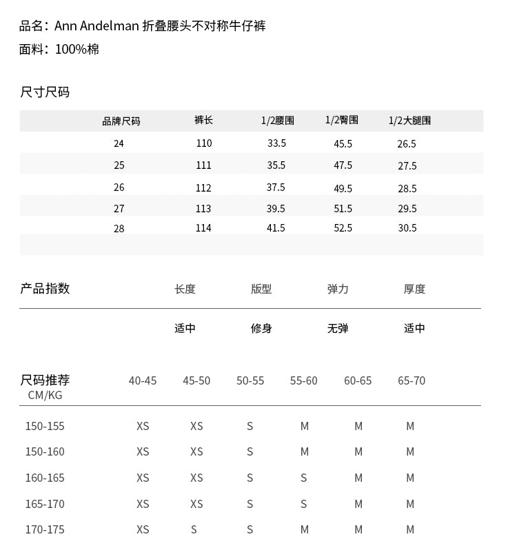 ANN ANDELMAN 2409 折叠腰头不对称牛仔裤