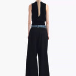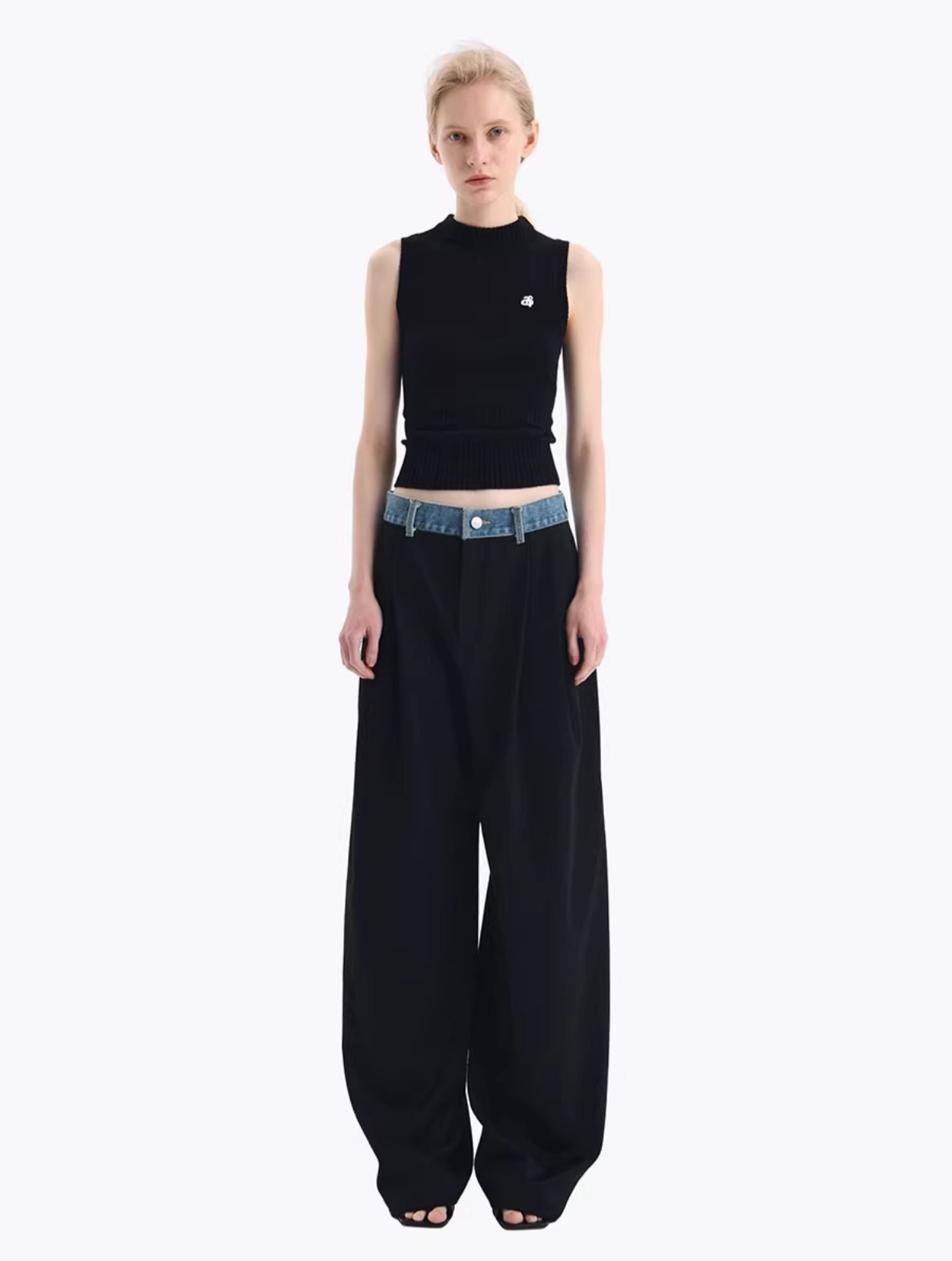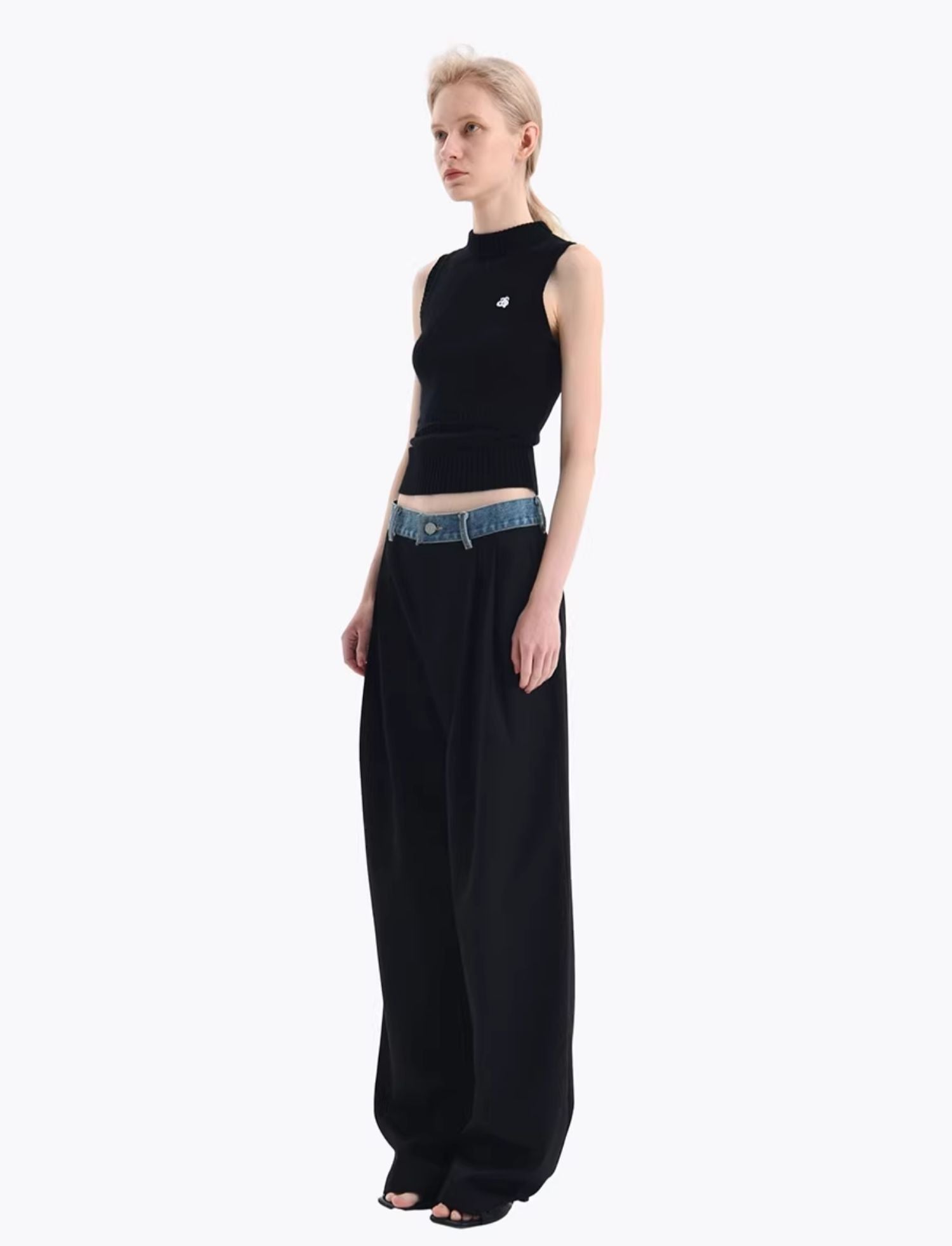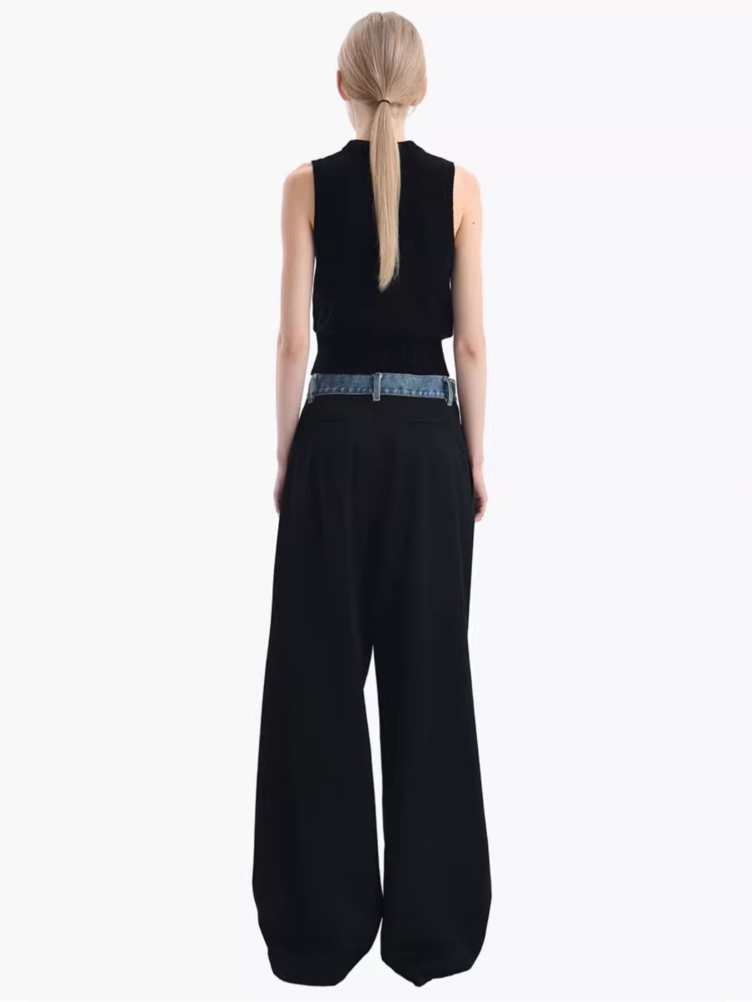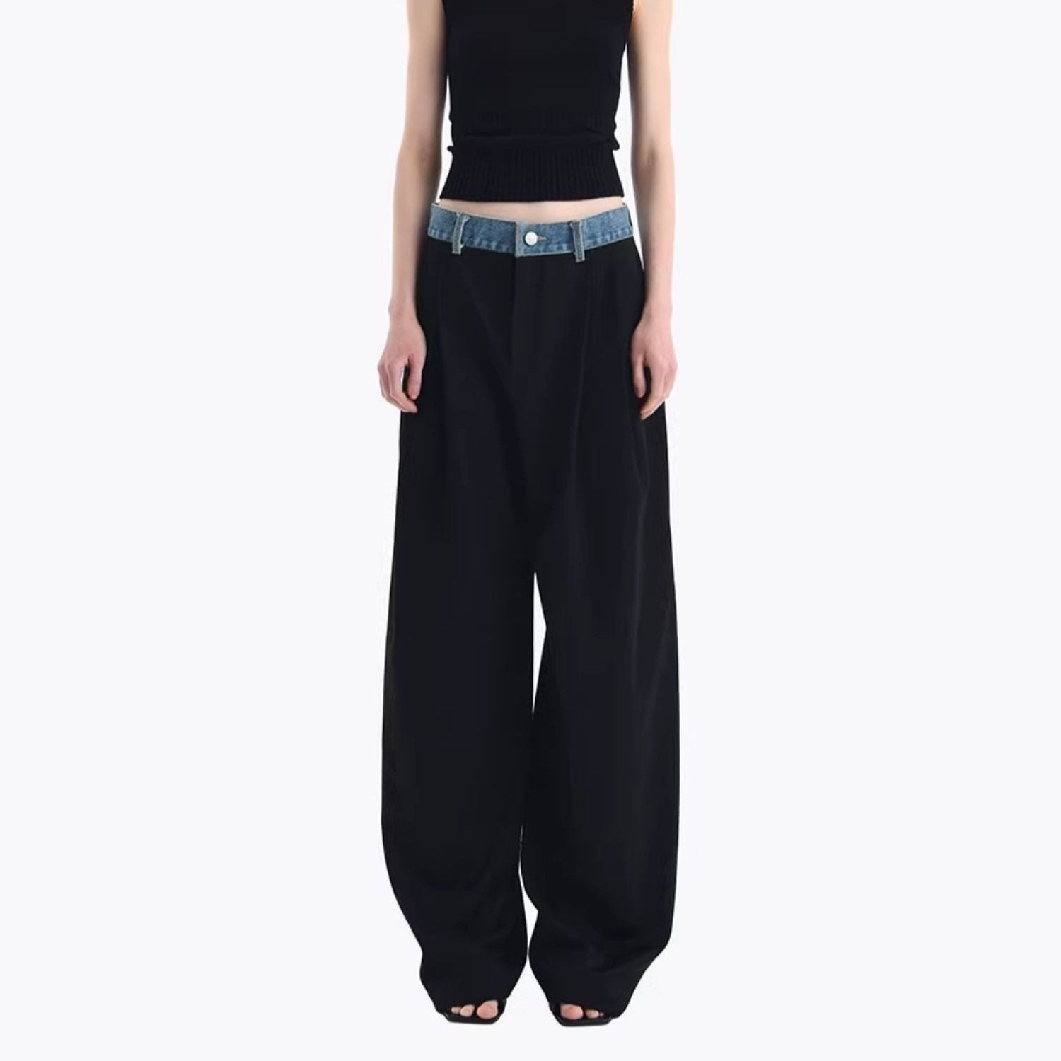 ANN ANDELMAN 2409 牛仔腰头拼接西裤直筒长裤 黑