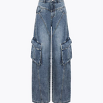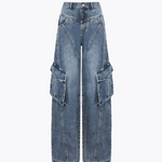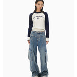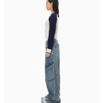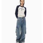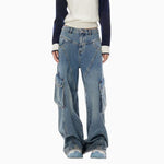 ANN ANDELMAN 2411 做旧磨白斜线分割牛仔工装裤(偏大)