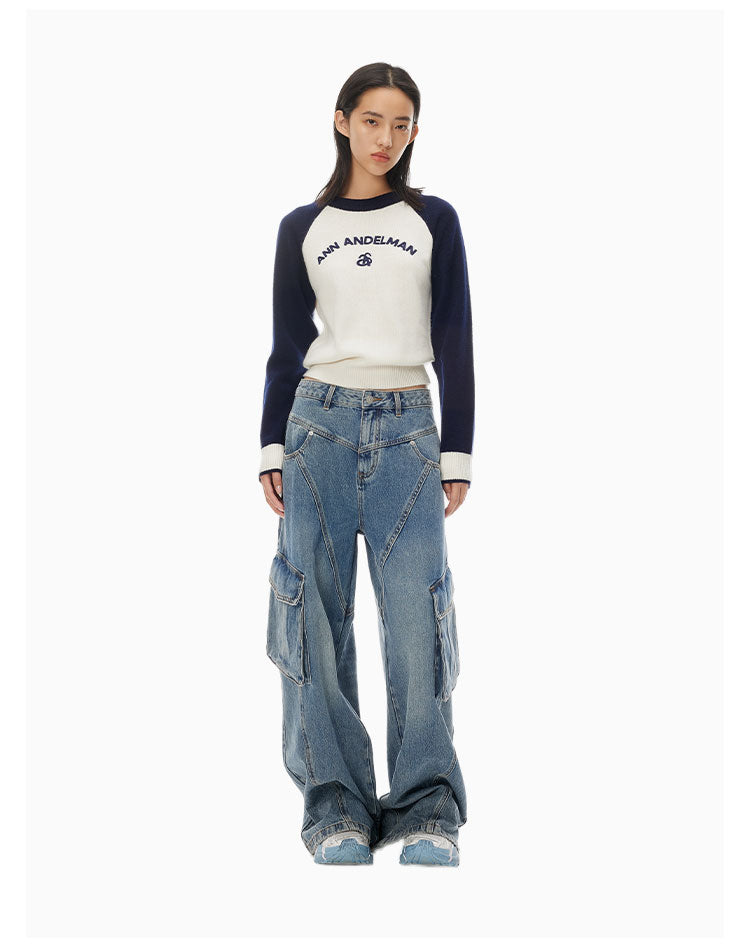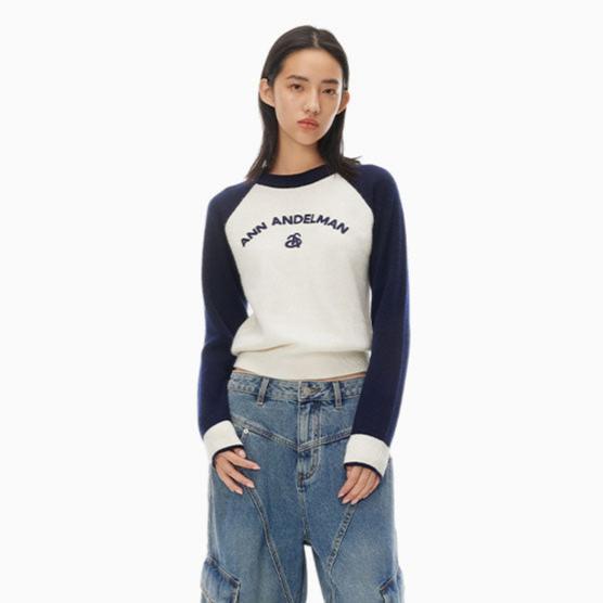 ANN ANDELMAN 2411 插肩袖毛织衫拼色长袖