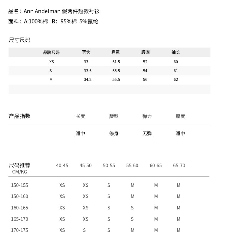 ANN ANDELMAN 2411 POLO领两件套短款衬衫