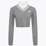 ANN ANDELMAN 2503 假两件翻领长袖毛衣 灰