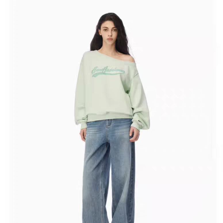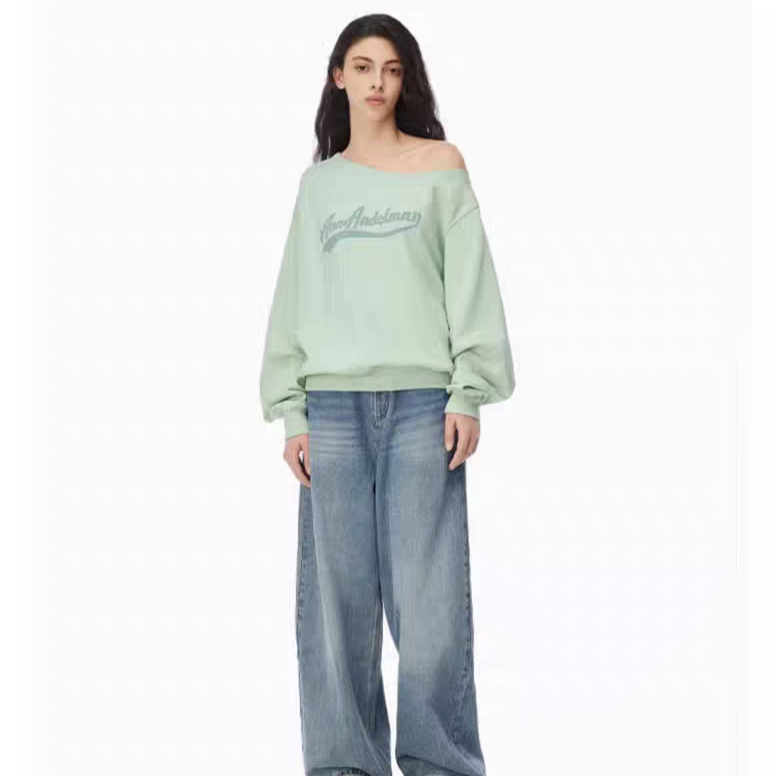ANN ANDELMAN 2503 印花斜领单肩卫衣 绿