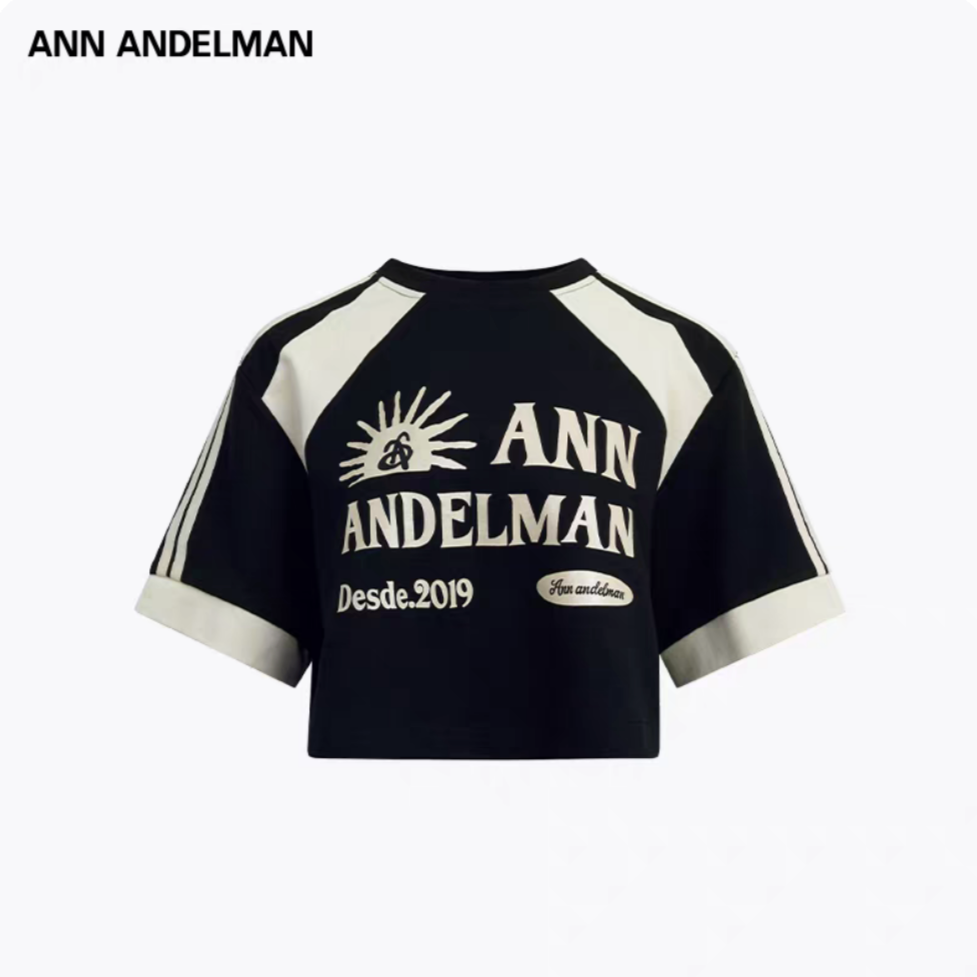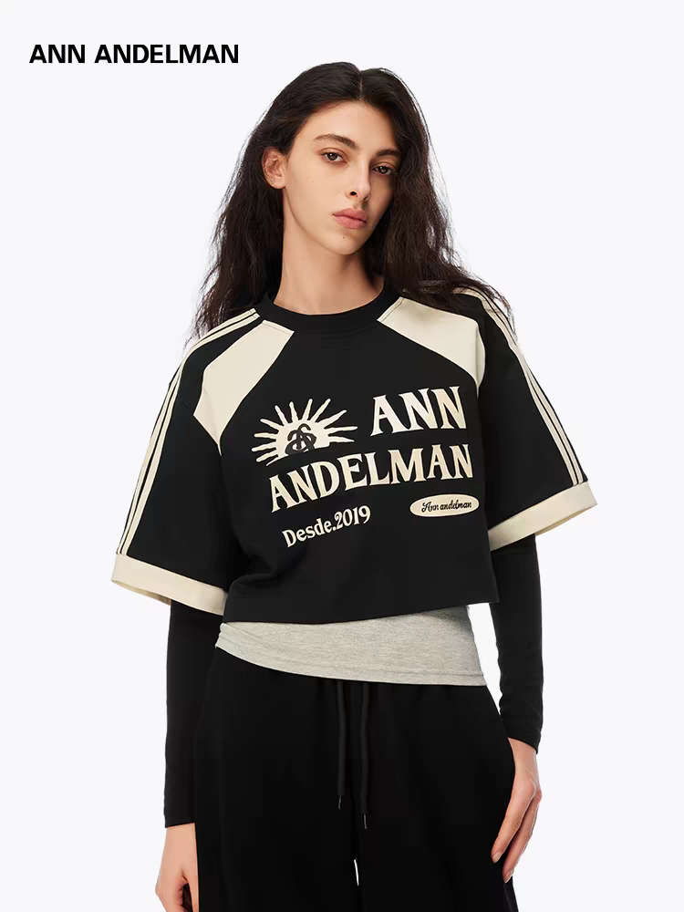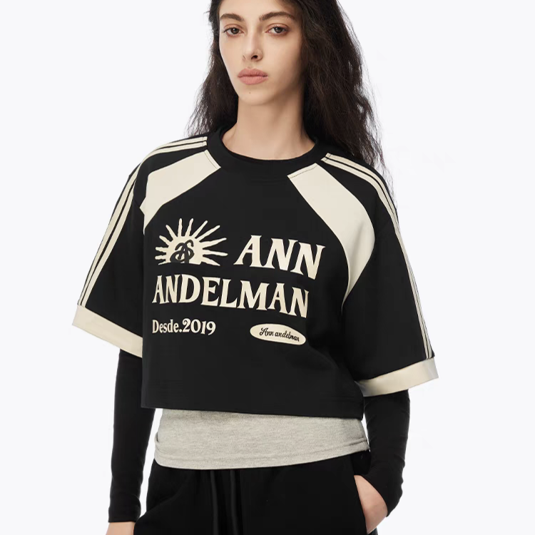 ANN ANDELMAN 2504 字母印花短款拼接T恤