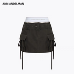 ANN ANDELMAN 2504 直筒拼接腰头水洗工装短裙 军绿