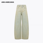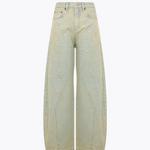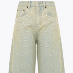 ANN ANDELMAN 2504 闪钻珍珠做旧牛仔弯刀裤 浅黄