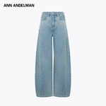 ANN ANDELMAN 2504 闪钻珍珠做旧牛仔弯刀裤 蓝