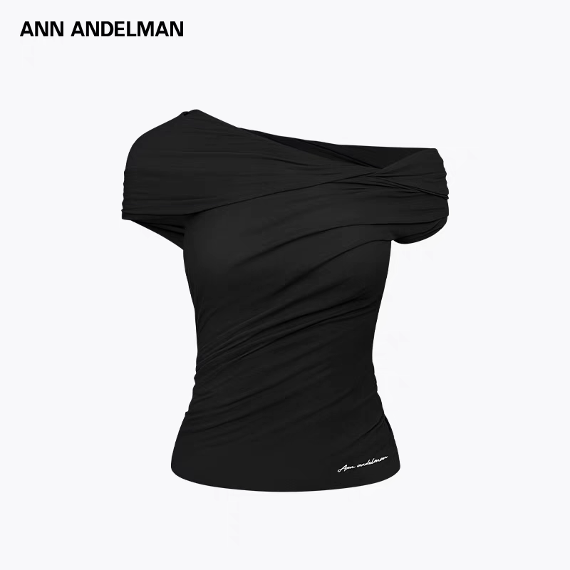 ANN ANDELMAN 2507 不规则领上衣褶皱Tee 黑