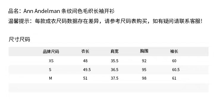 ANN ANDELMAN 2510 条纹间色毛织长袖开衫