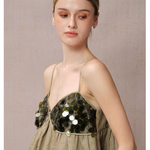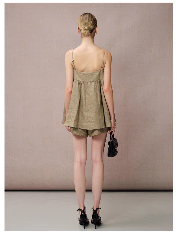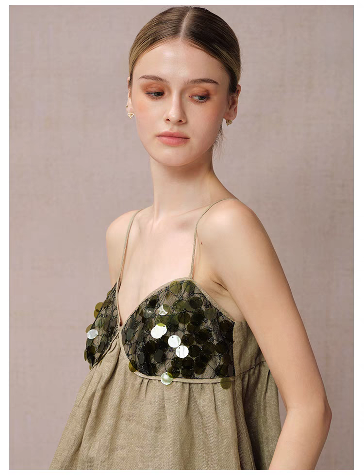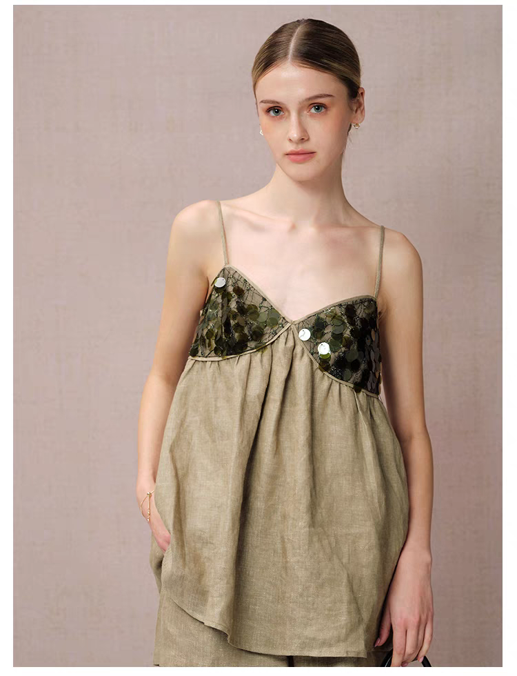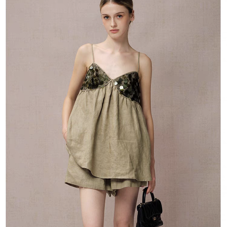 DIANA VEVINA 亚麻亮片拼接吊带+短裤