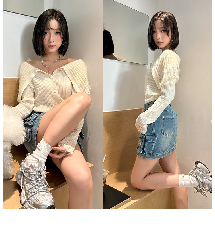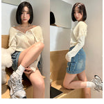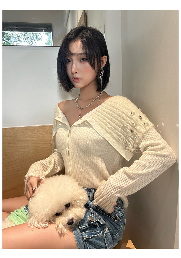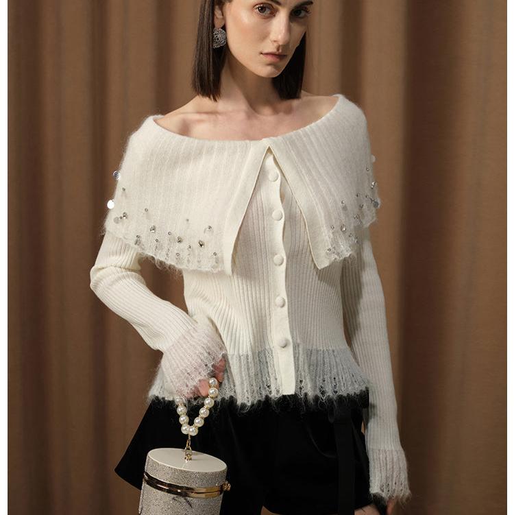 DIANA VEVINA 温柔大翻领软糯毛衣开衫 白