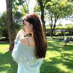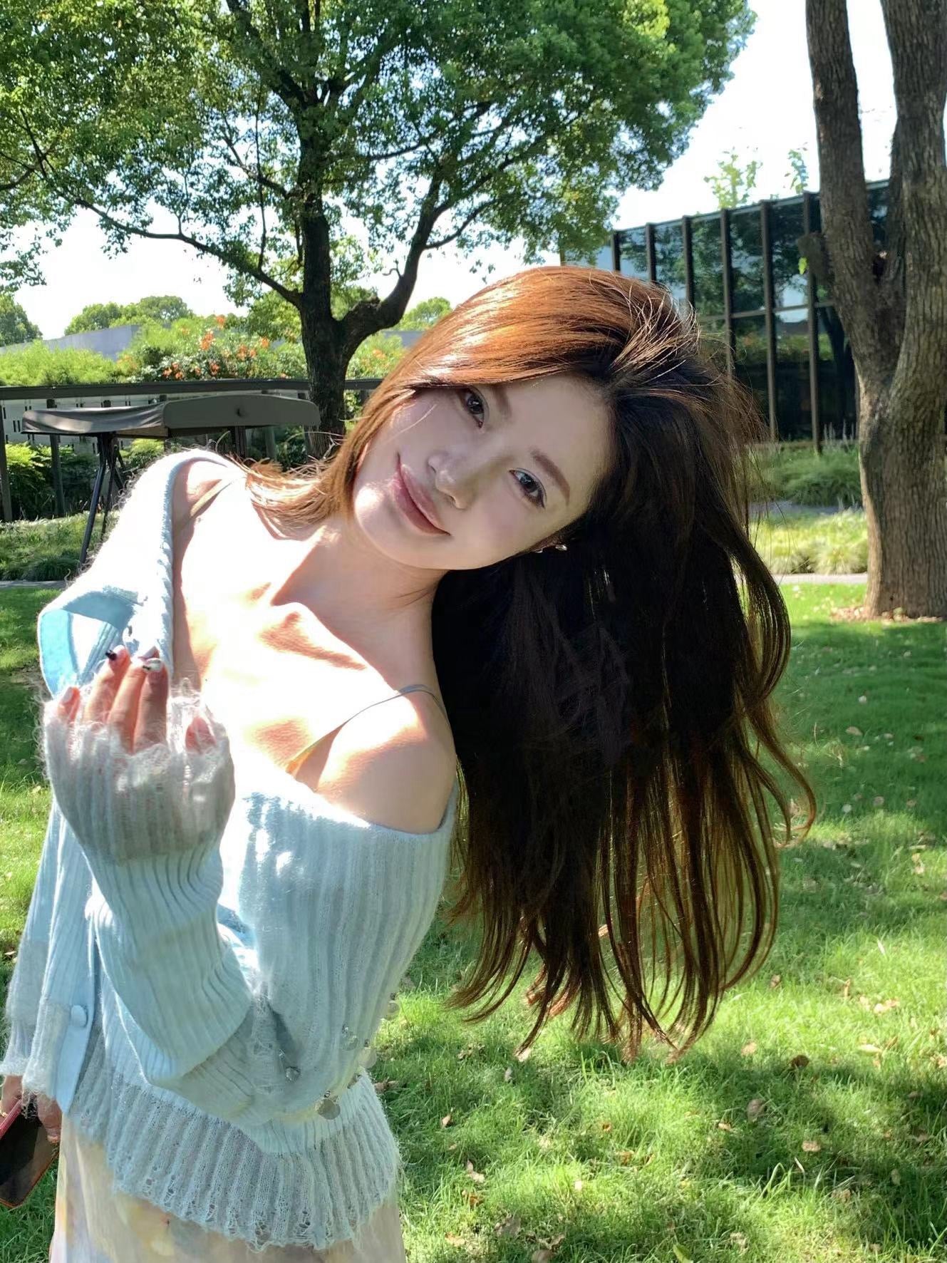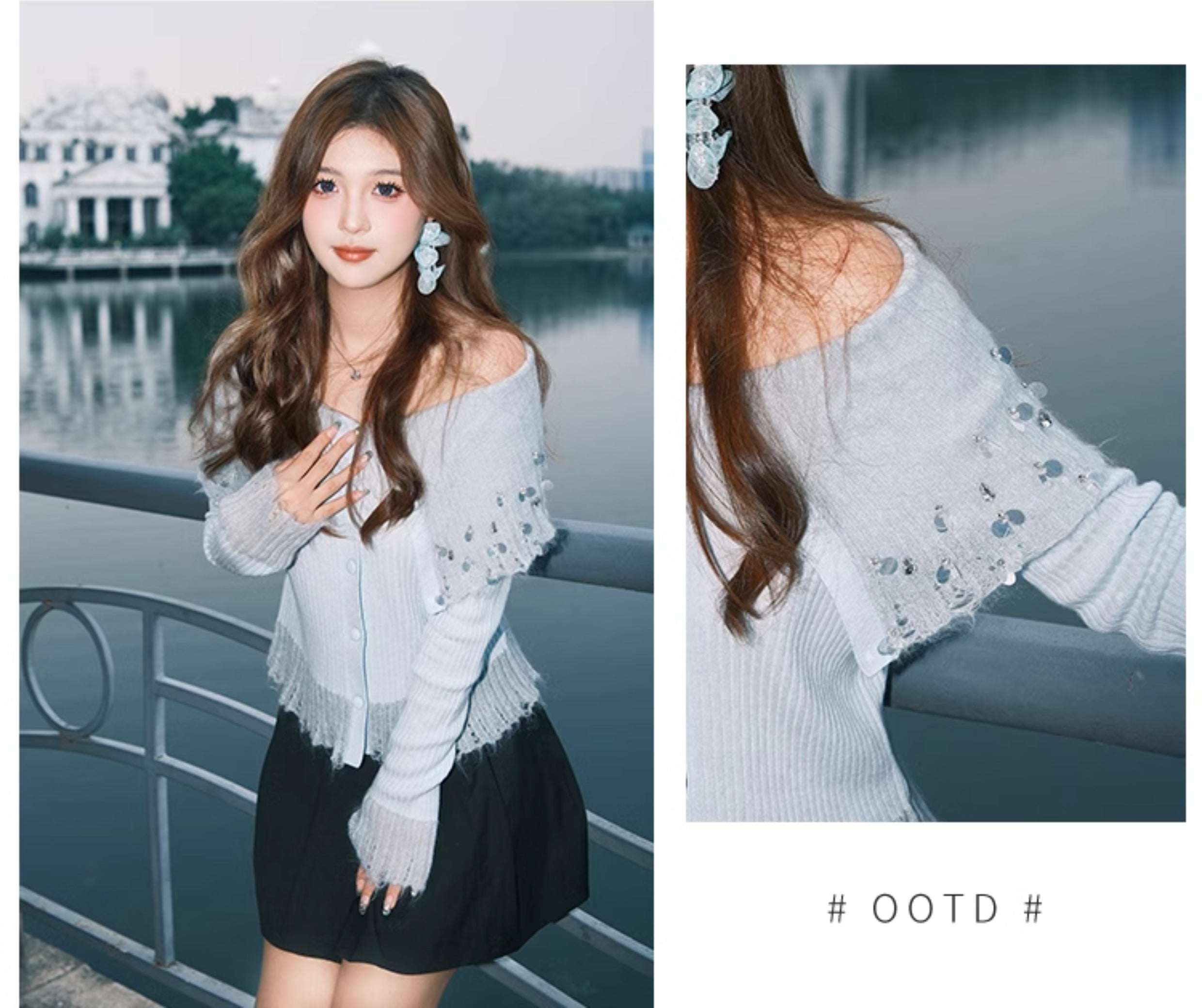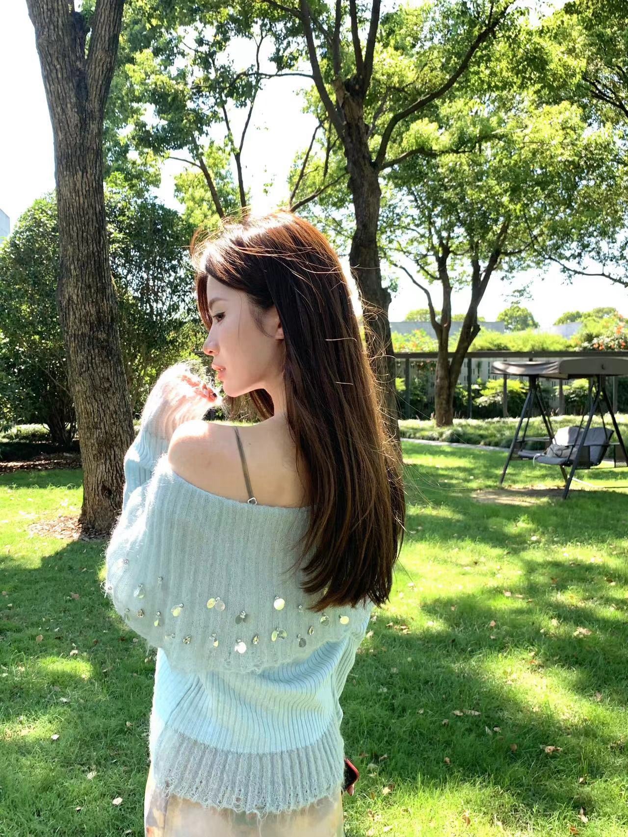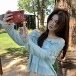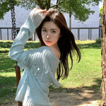 DIANA VEVINA 温柔大翻领软糯毛衣开衫 蓝
