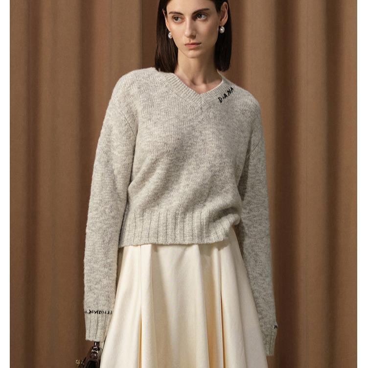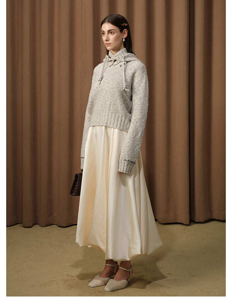 DIANA VEVINA 羊毛可拆卸带帽围脖毛针织衫 灰