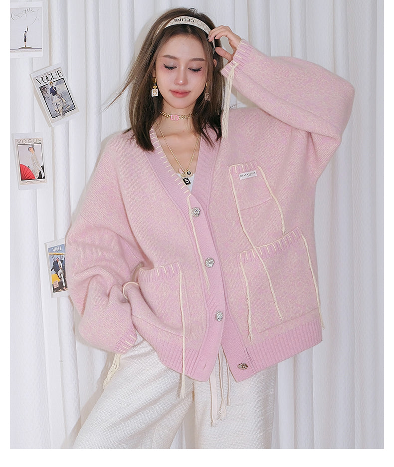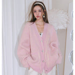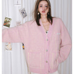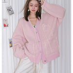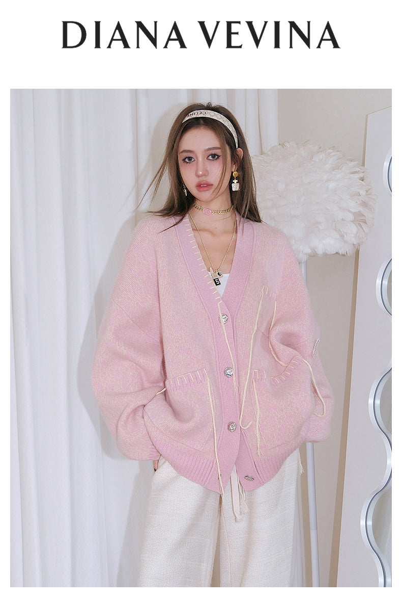 DIANA VEVINA 花纹图腾开衫羊毛毛衣 粉