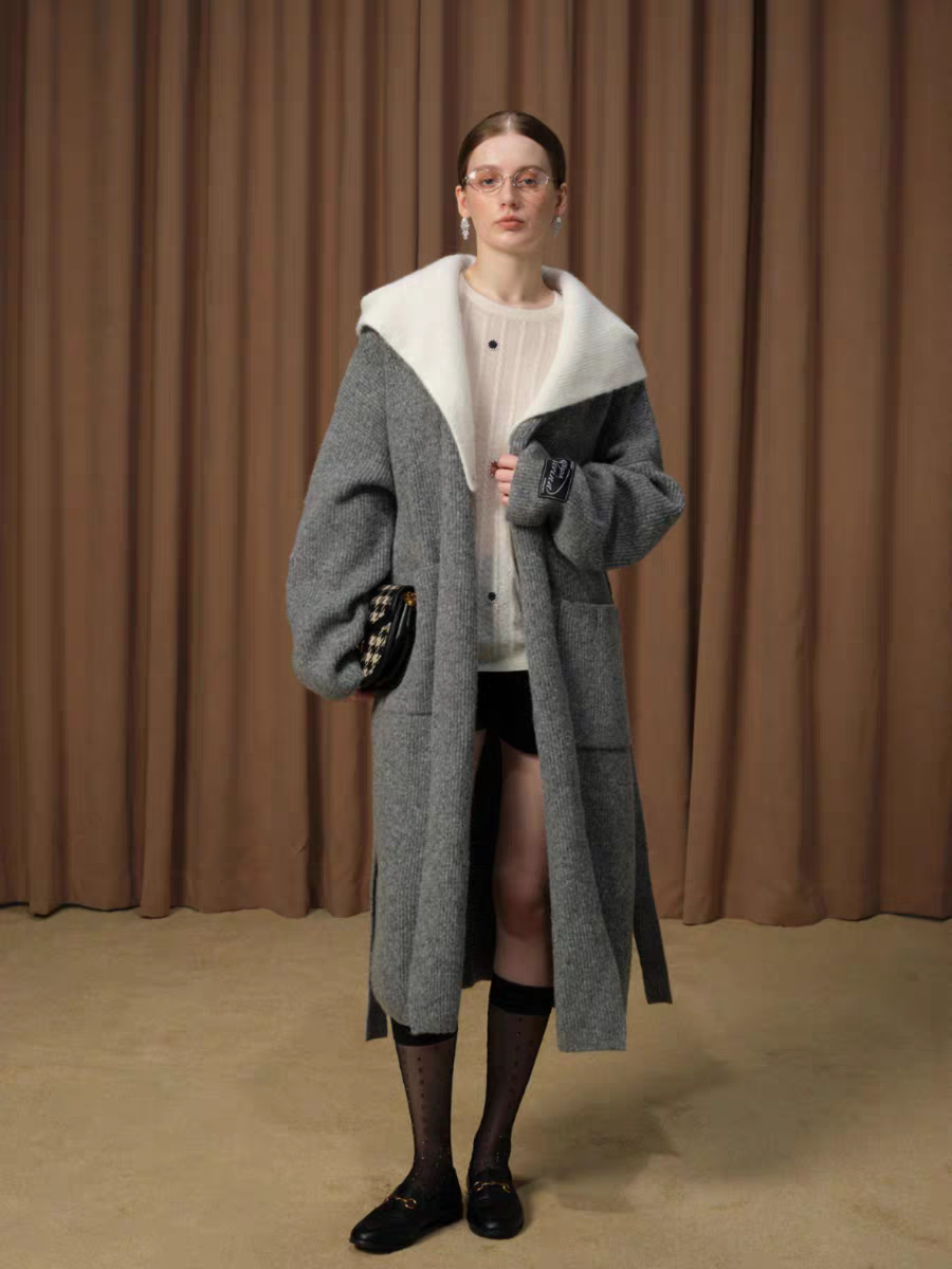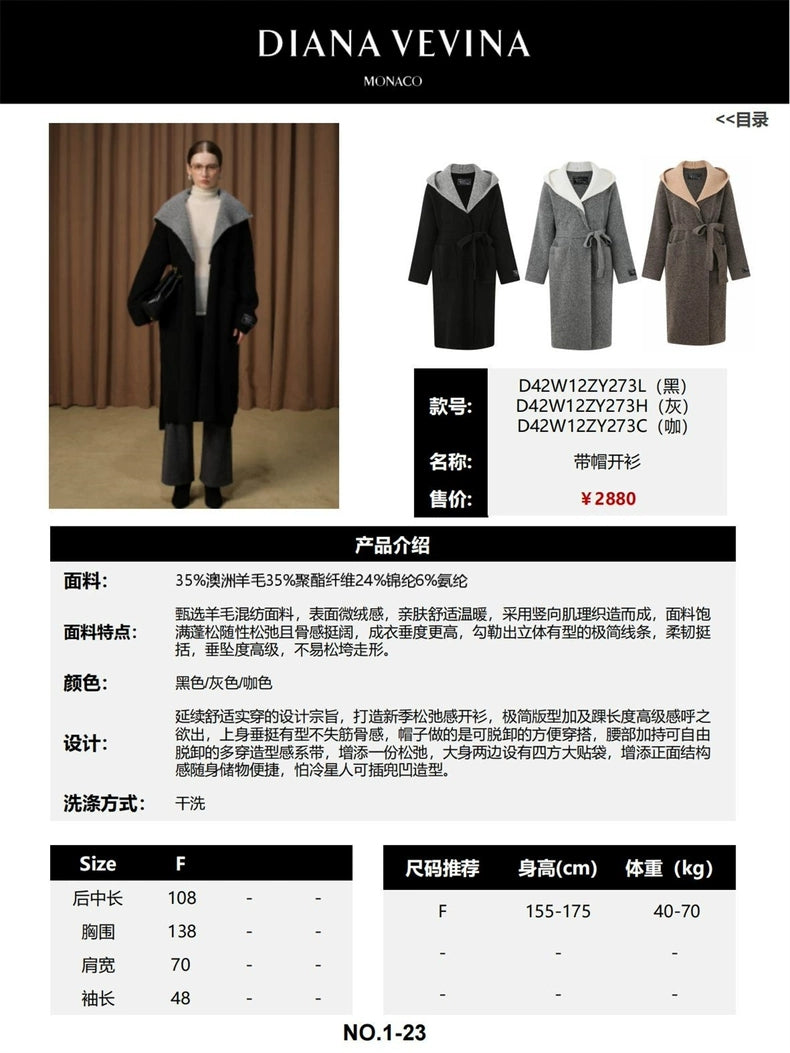 DIANA VEVINA 2512 连帽羊毛气质大衣 灰
