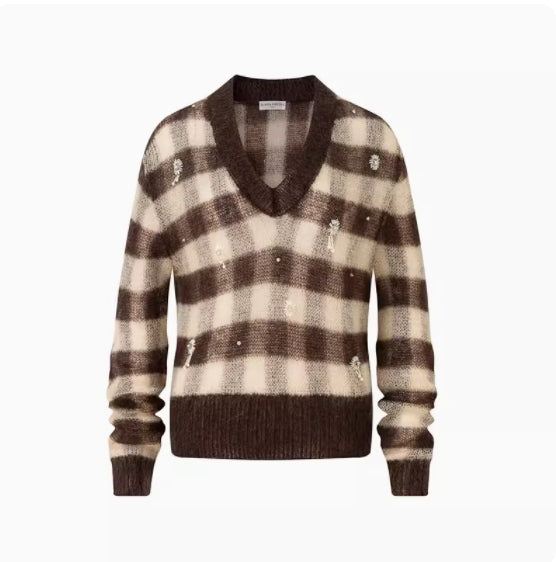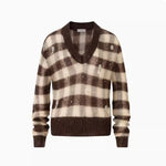 DIANA VEVINA V领马海毛针织条纹毛衣 咖