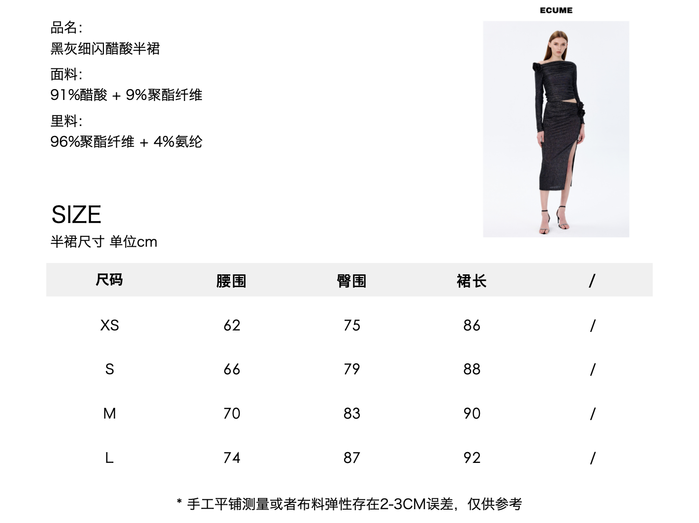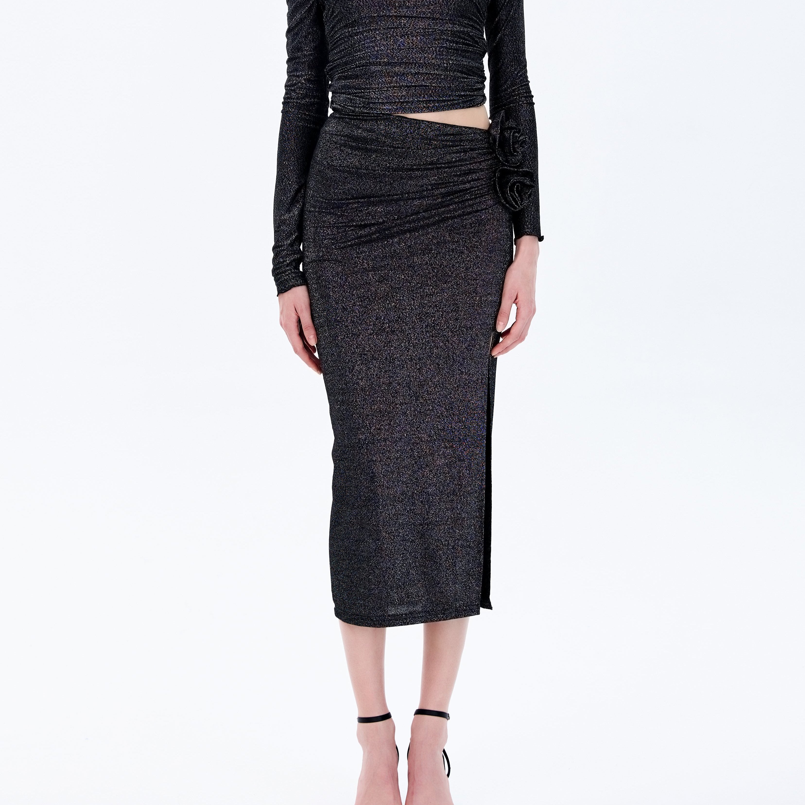 ECUME 2408 玫瑰褶皱开叉半身裙