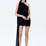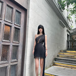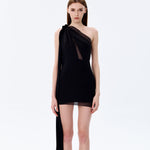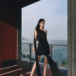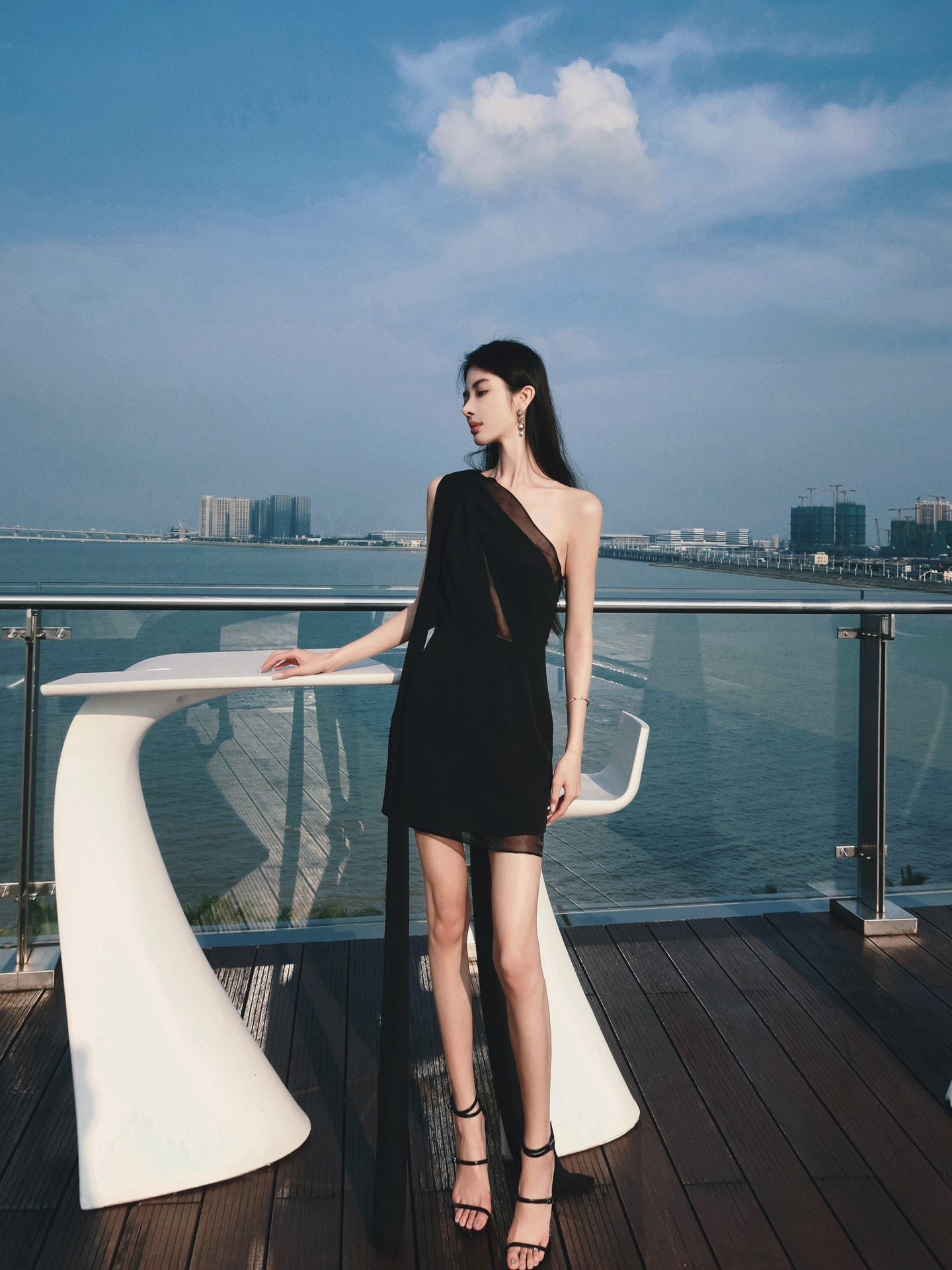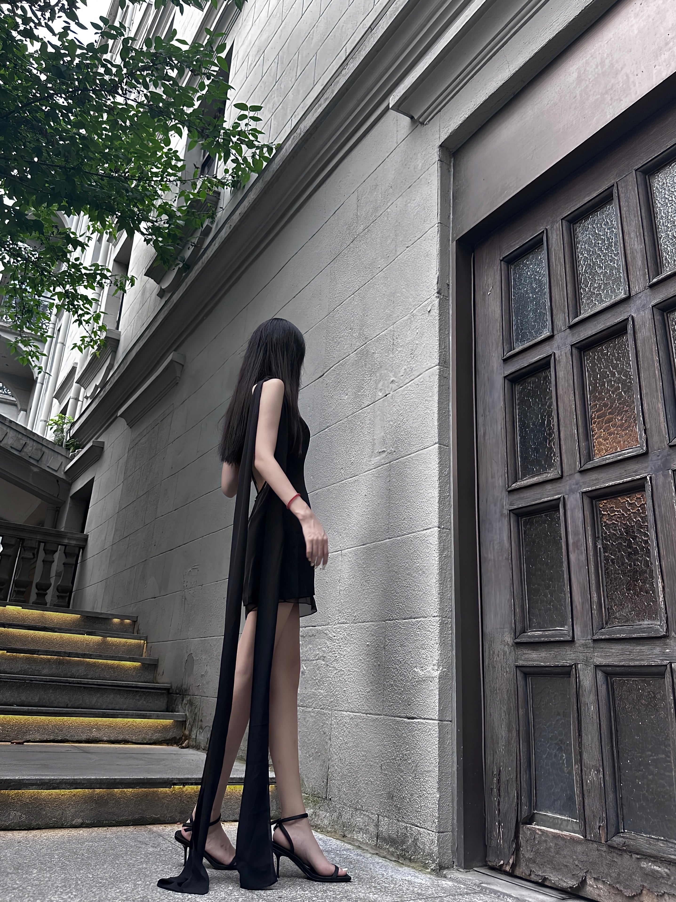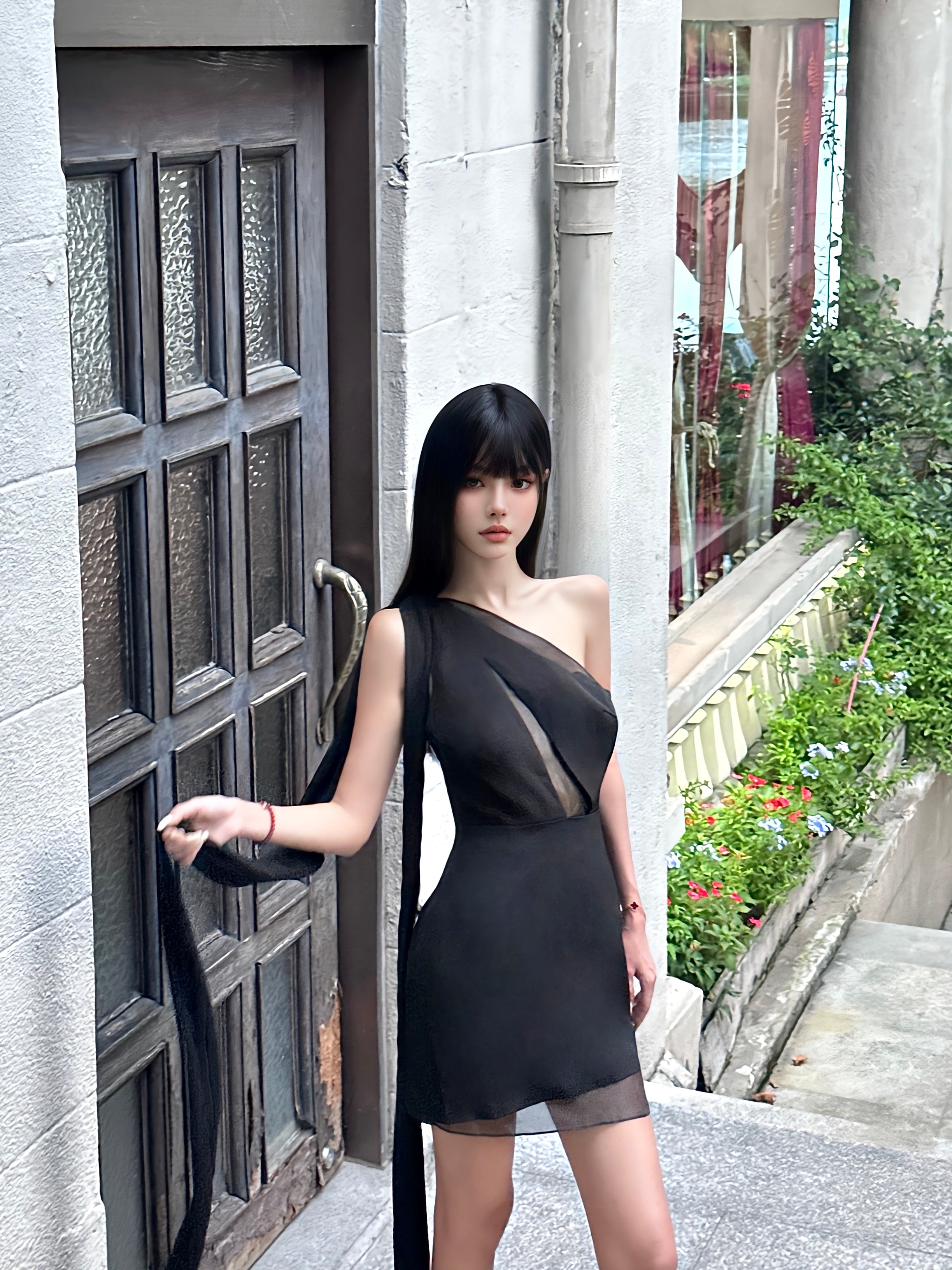 ECUME 2408 飘带分割透视斜肩露背礼服裙