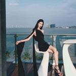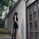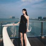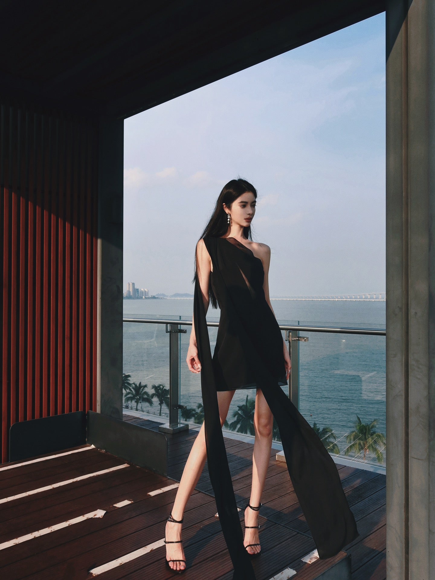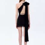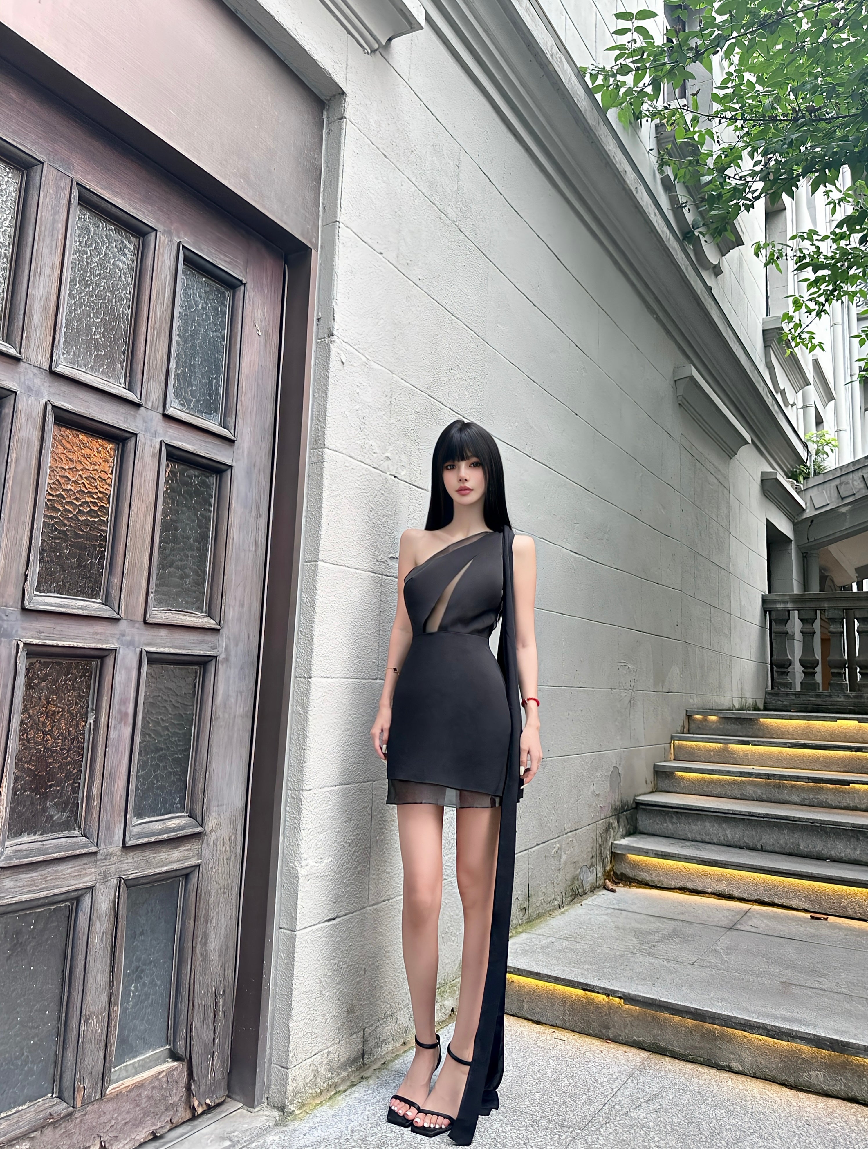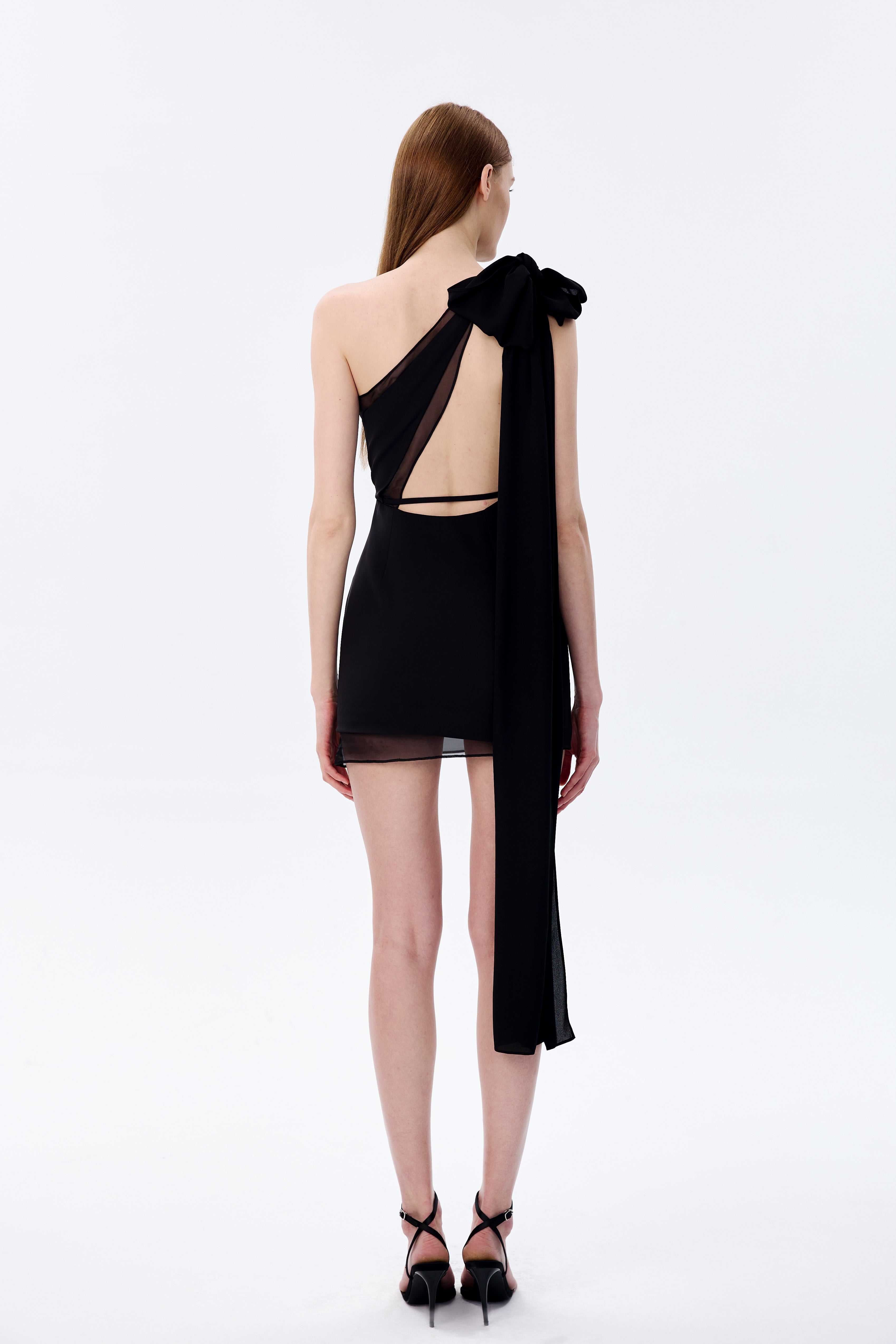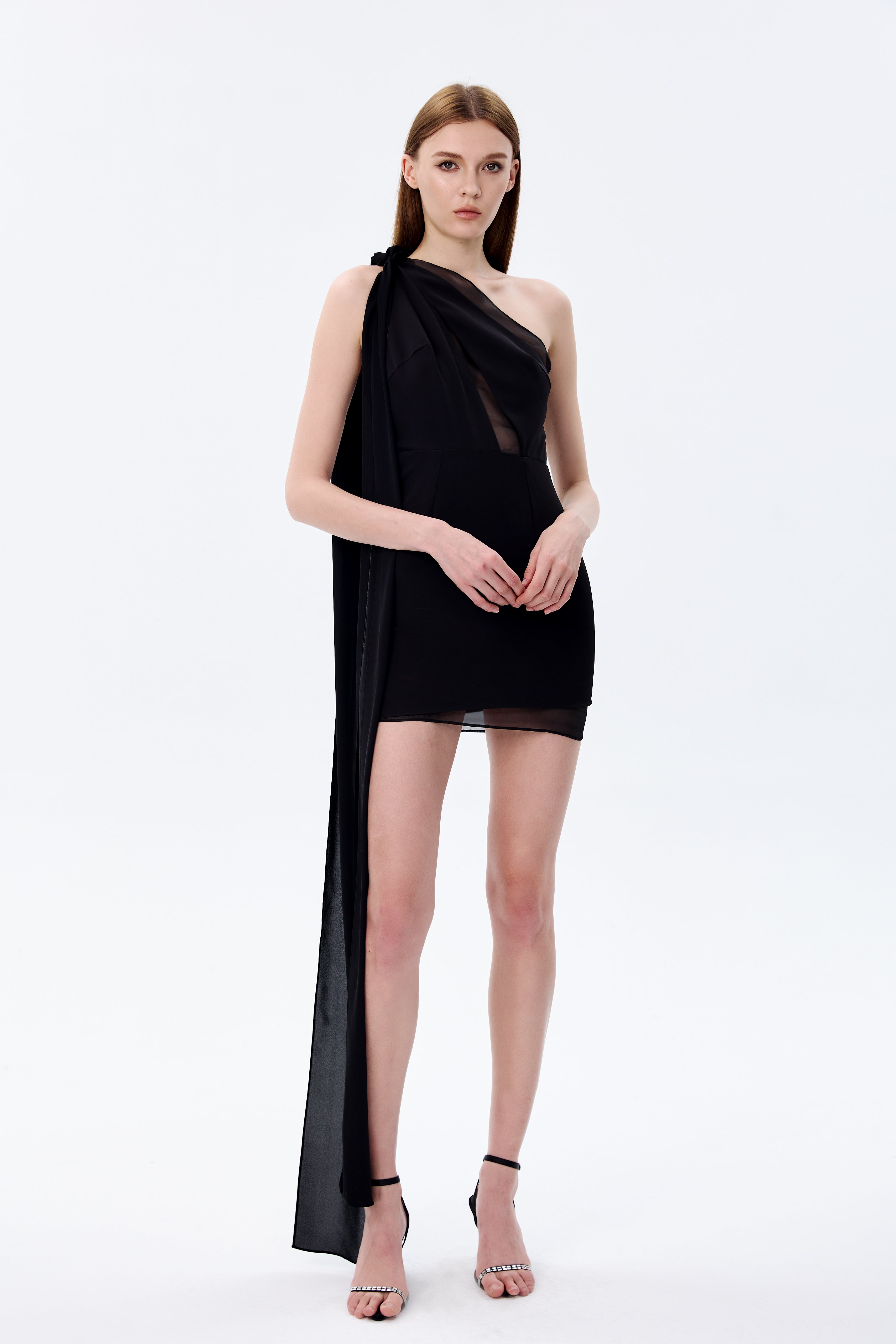 ECUME 2408 飘带分割透视斜肩露背礼服裙