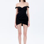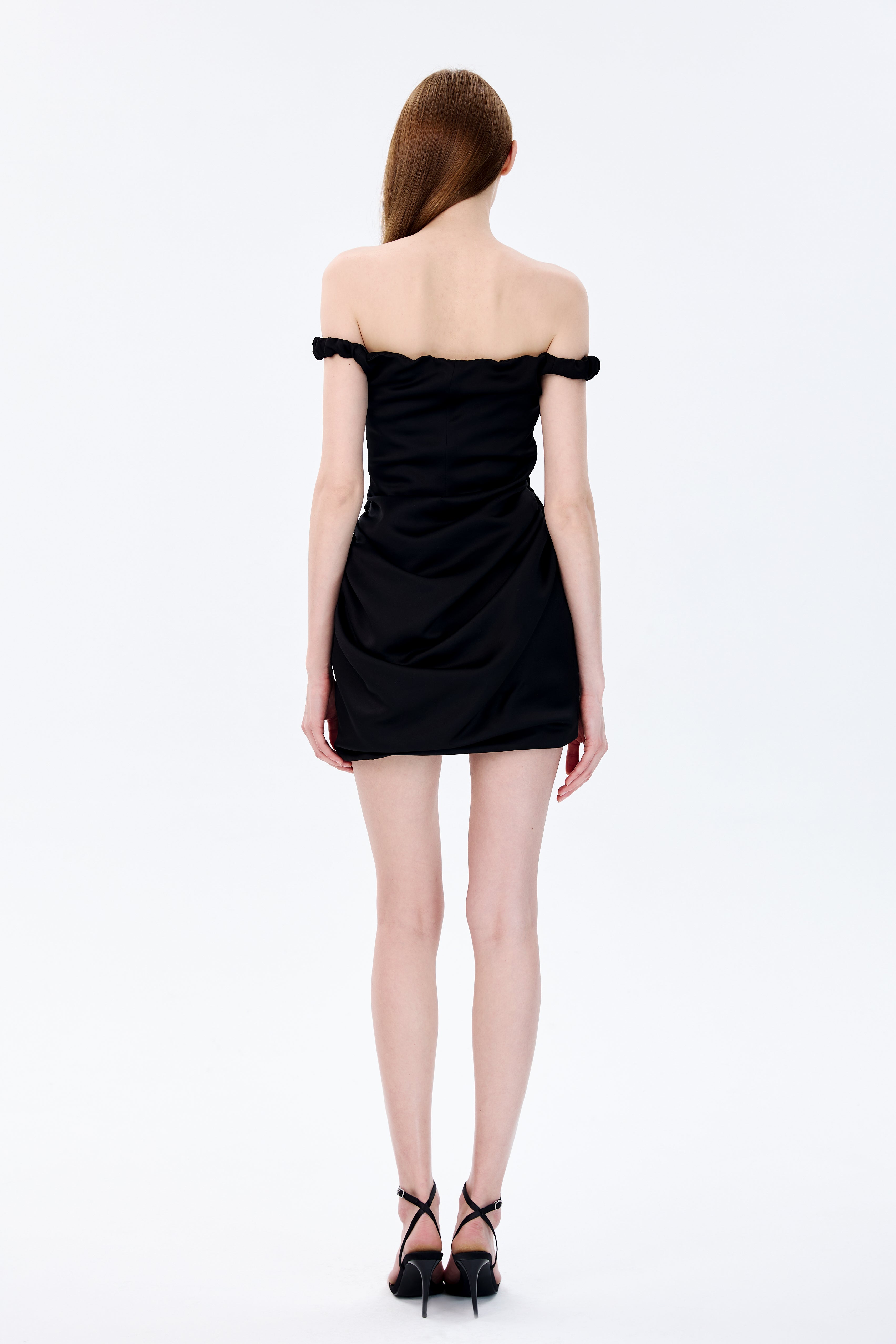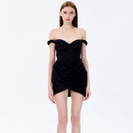 ECUME 2408 黑色弹力肩带褶皱花苞裙