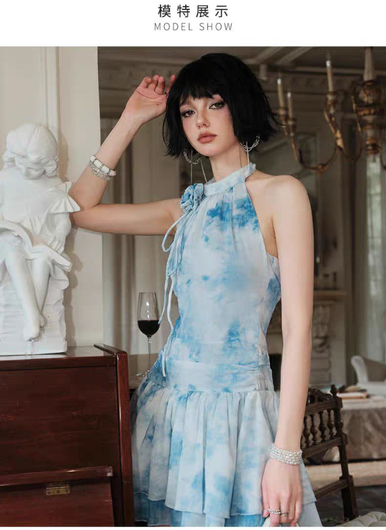 EIMISMOSOL 2502 渲染油墨花朵连衣裙