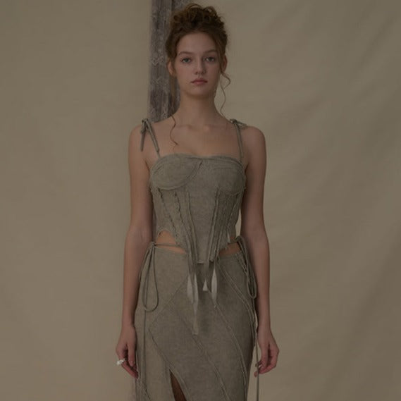 ELYWOOD 解构绳结吊带背心 灰绿