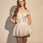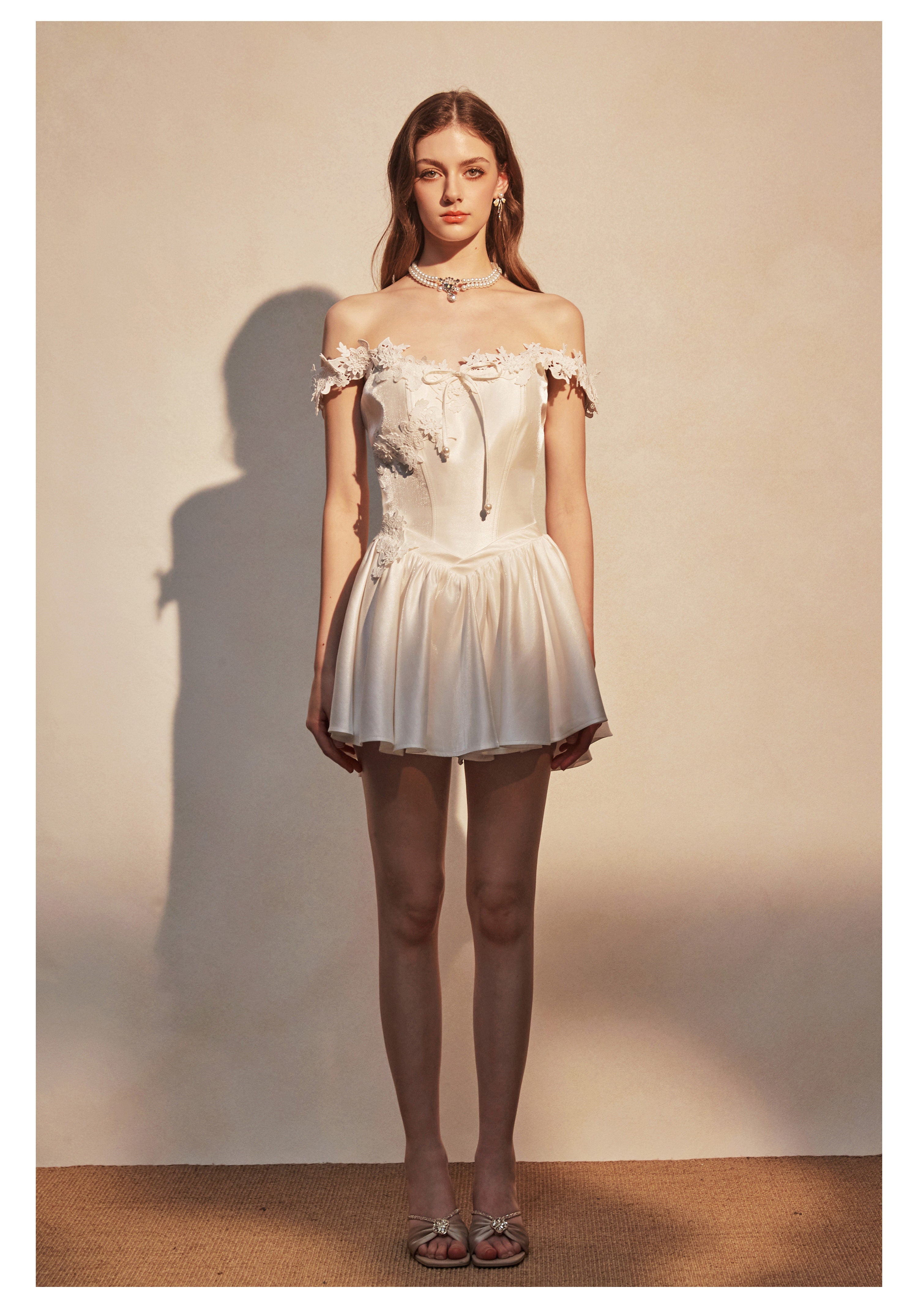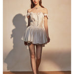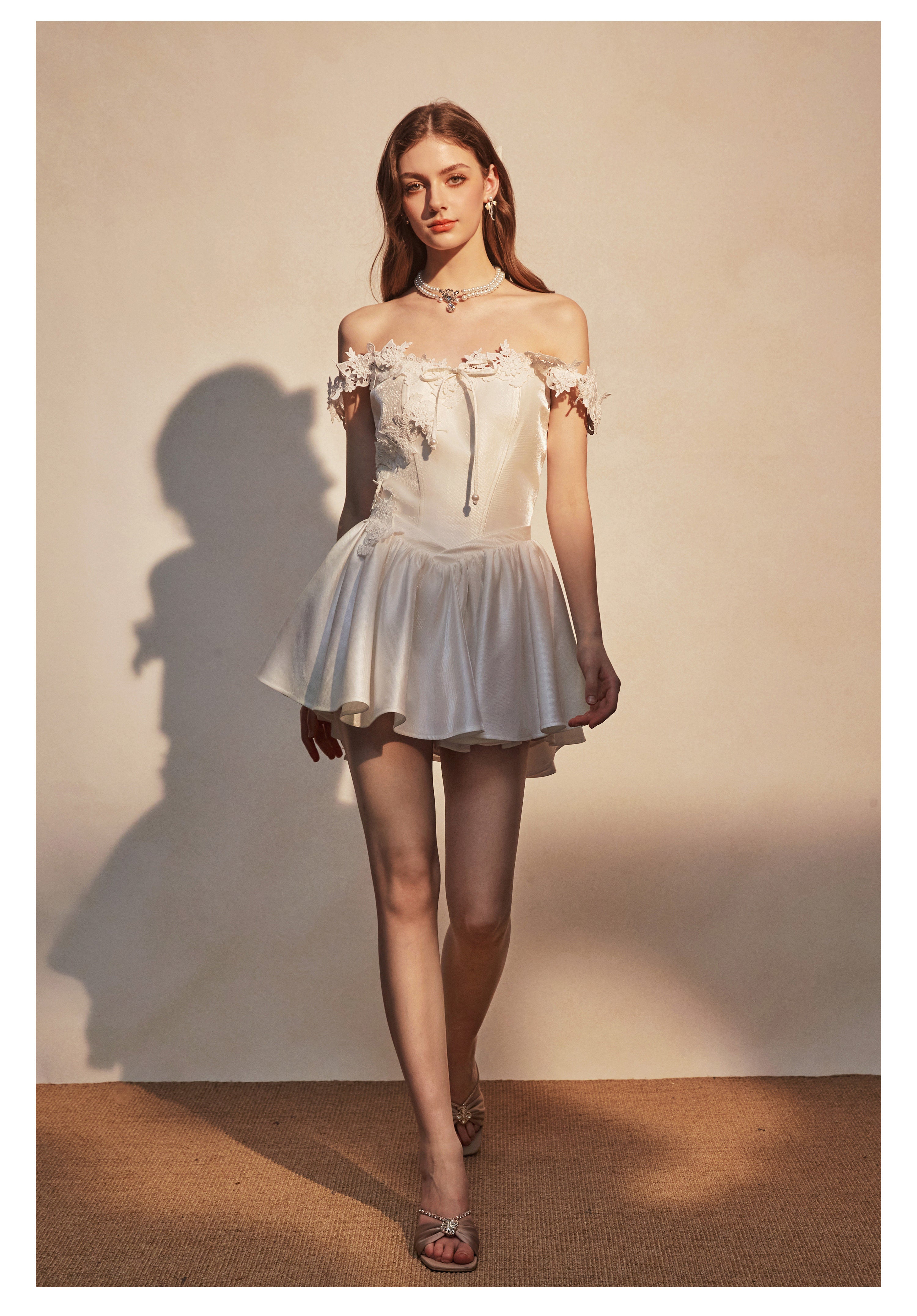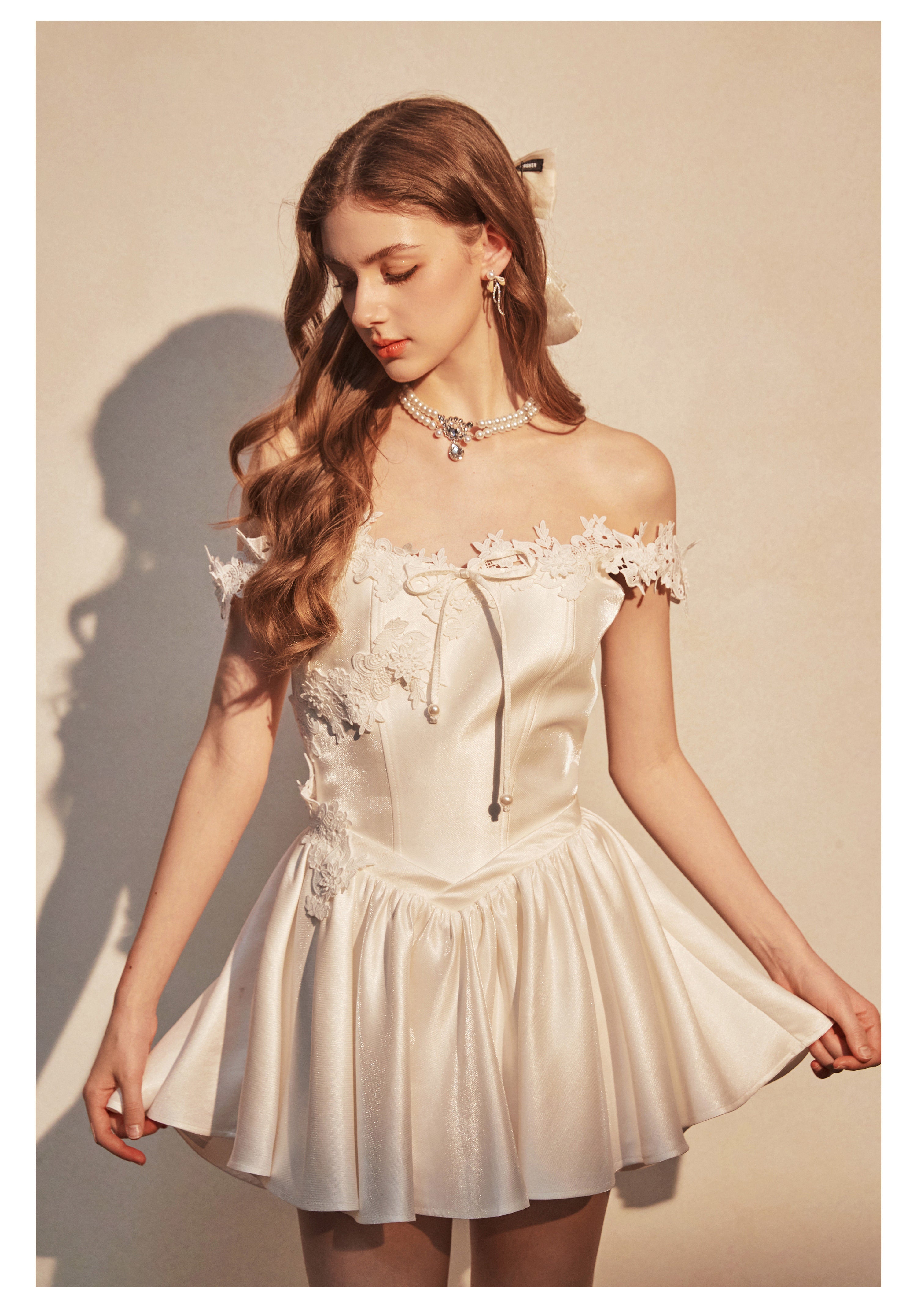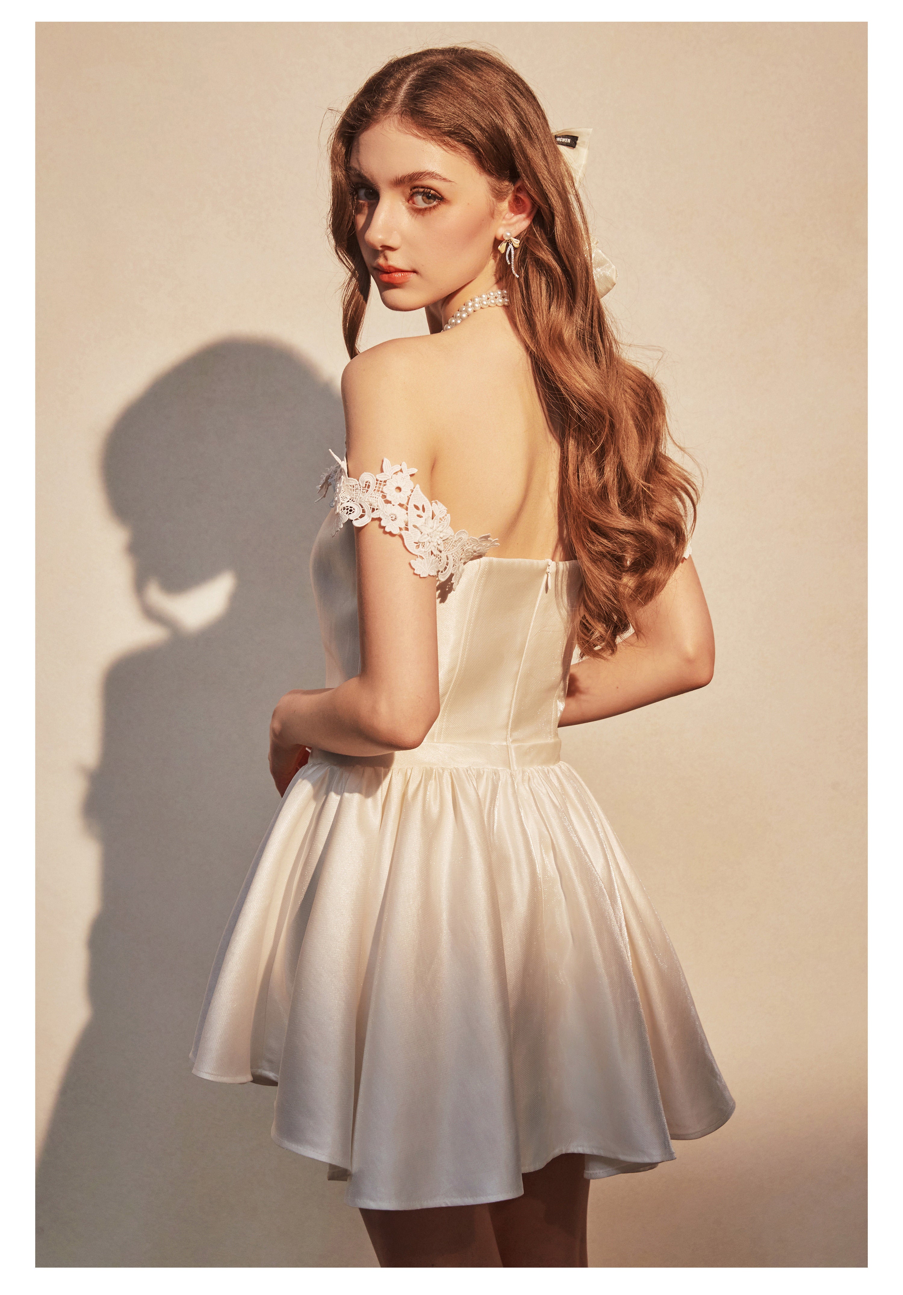 KINGWEN 2512 白色蕾丝肩带连衣裙
