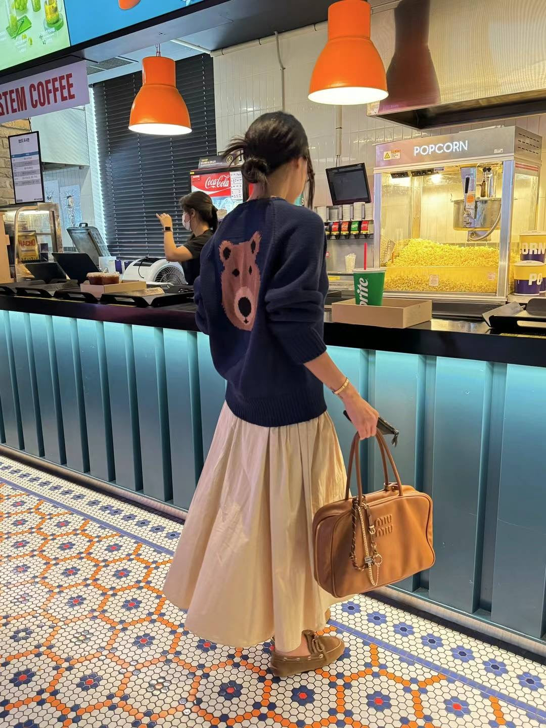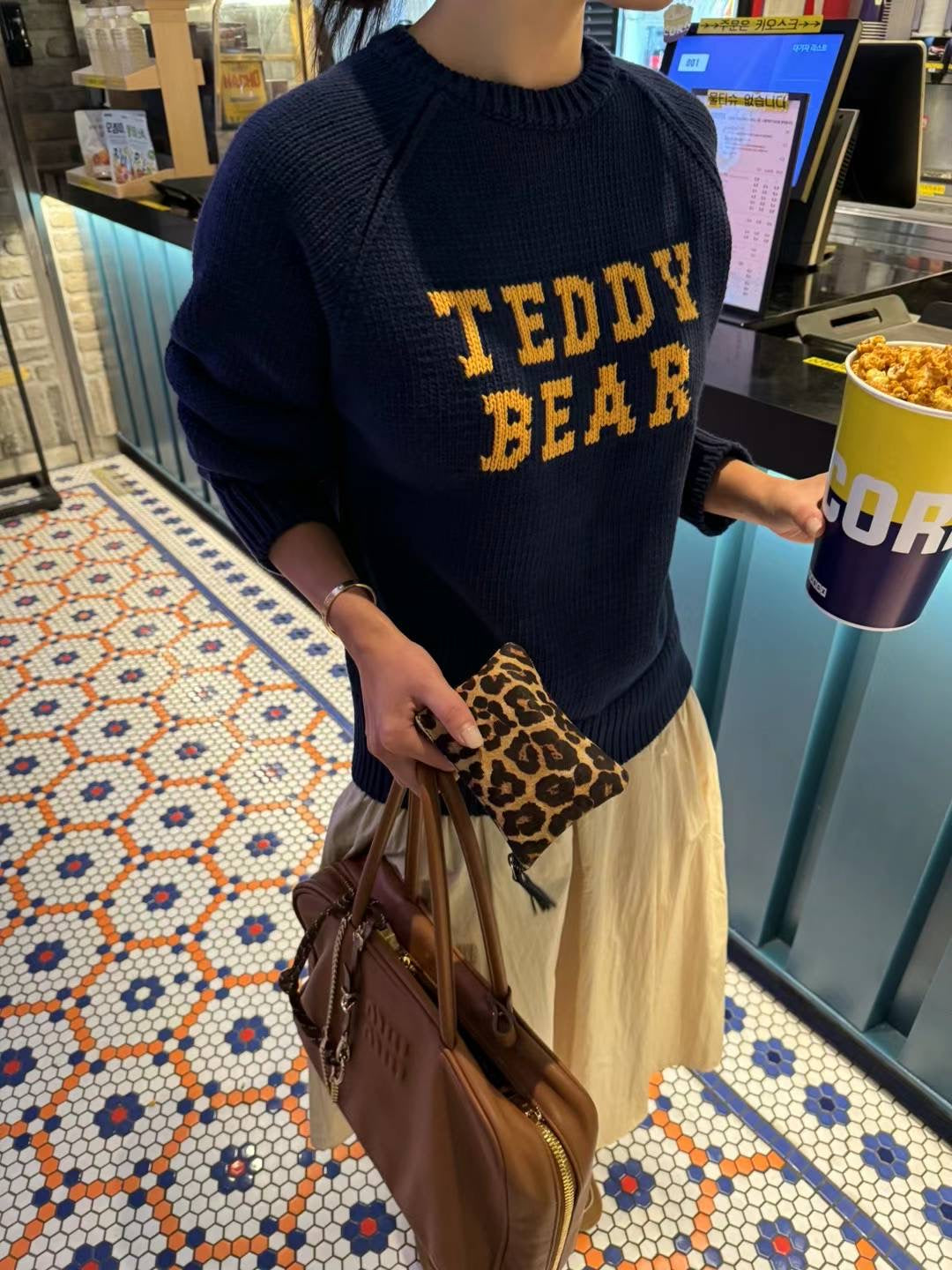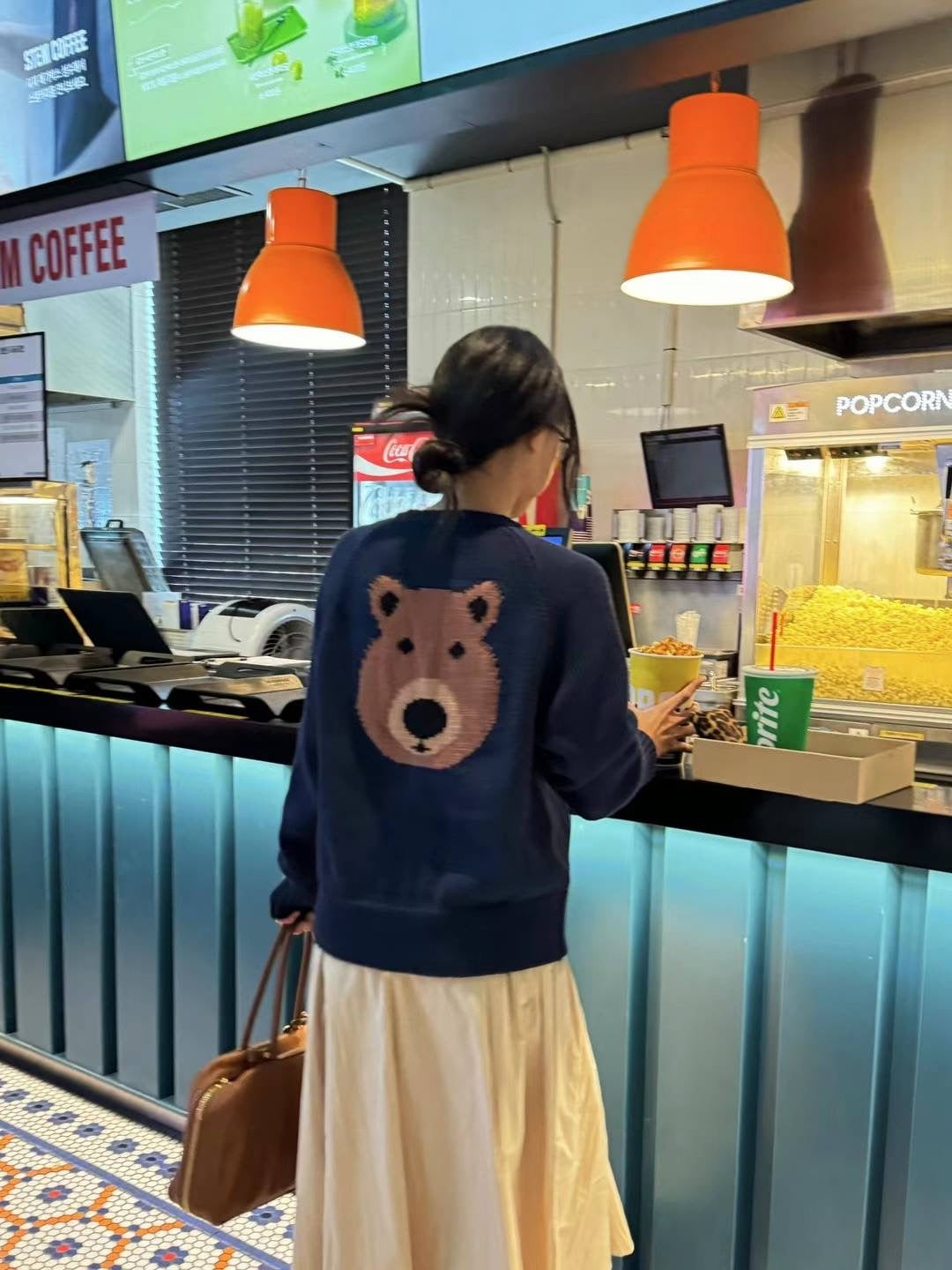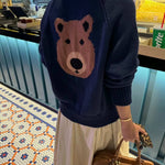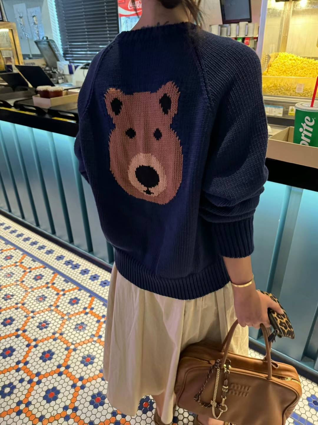 KOREAN COLLECTION 2410 卡通小熊针织宽松毛衣 深蓝