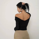 KOREAN COLLECTION 2410 大V领可一字肩长袖打底衫 黑