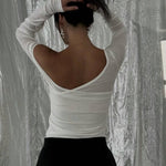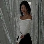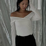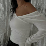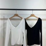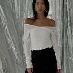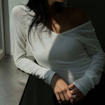 KOREAN COLLECTION 2410 大V领可一字肩长袖打底衫 白
