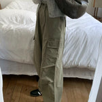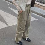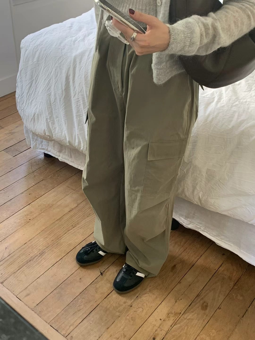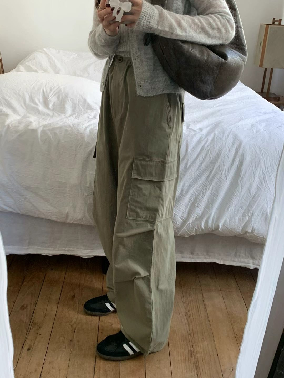 KOREAN COLLECTION 2410 工装系扣直筒休闲裤 军绿