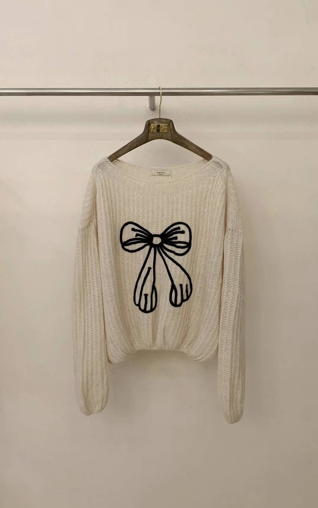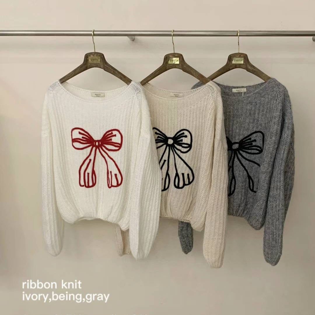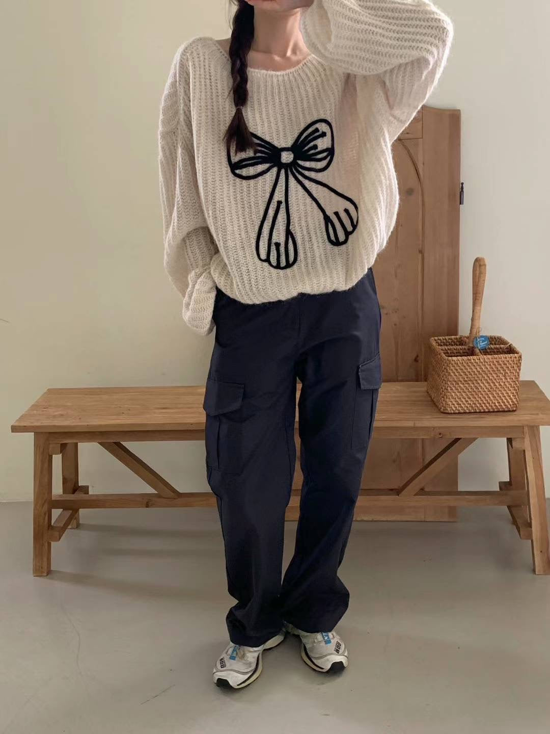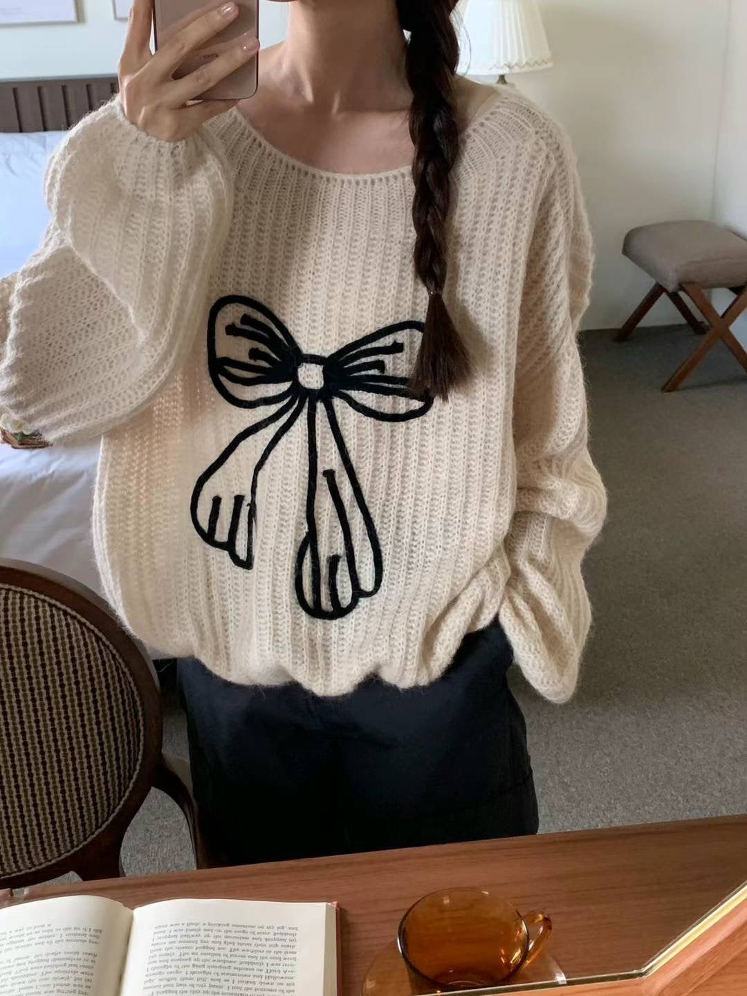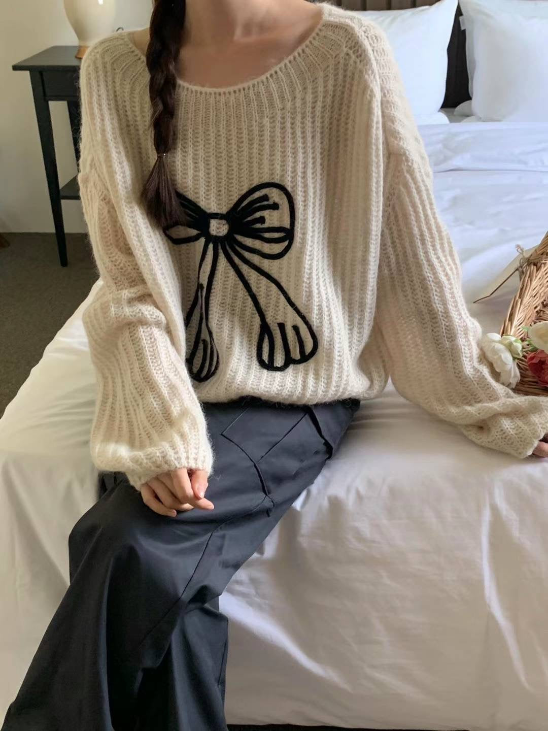 KOREAN COLLECTION 2410 蝴蝶结宽松针织上衣