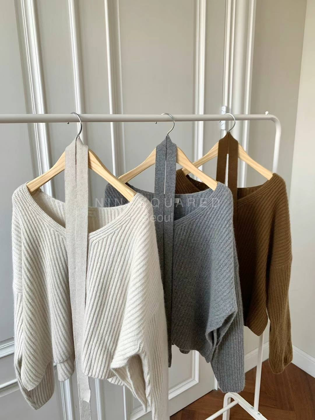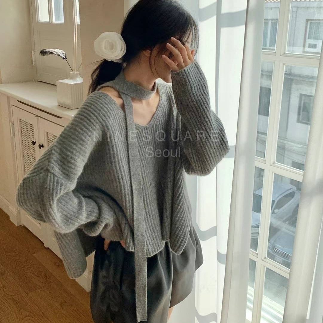 KOREAN COLLECTION 2410 V领宽松针织毛衣 灰
