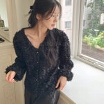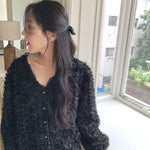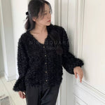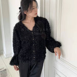 KOREAN COLLECTION 2410 V领气质系扣长袖上衣 黑