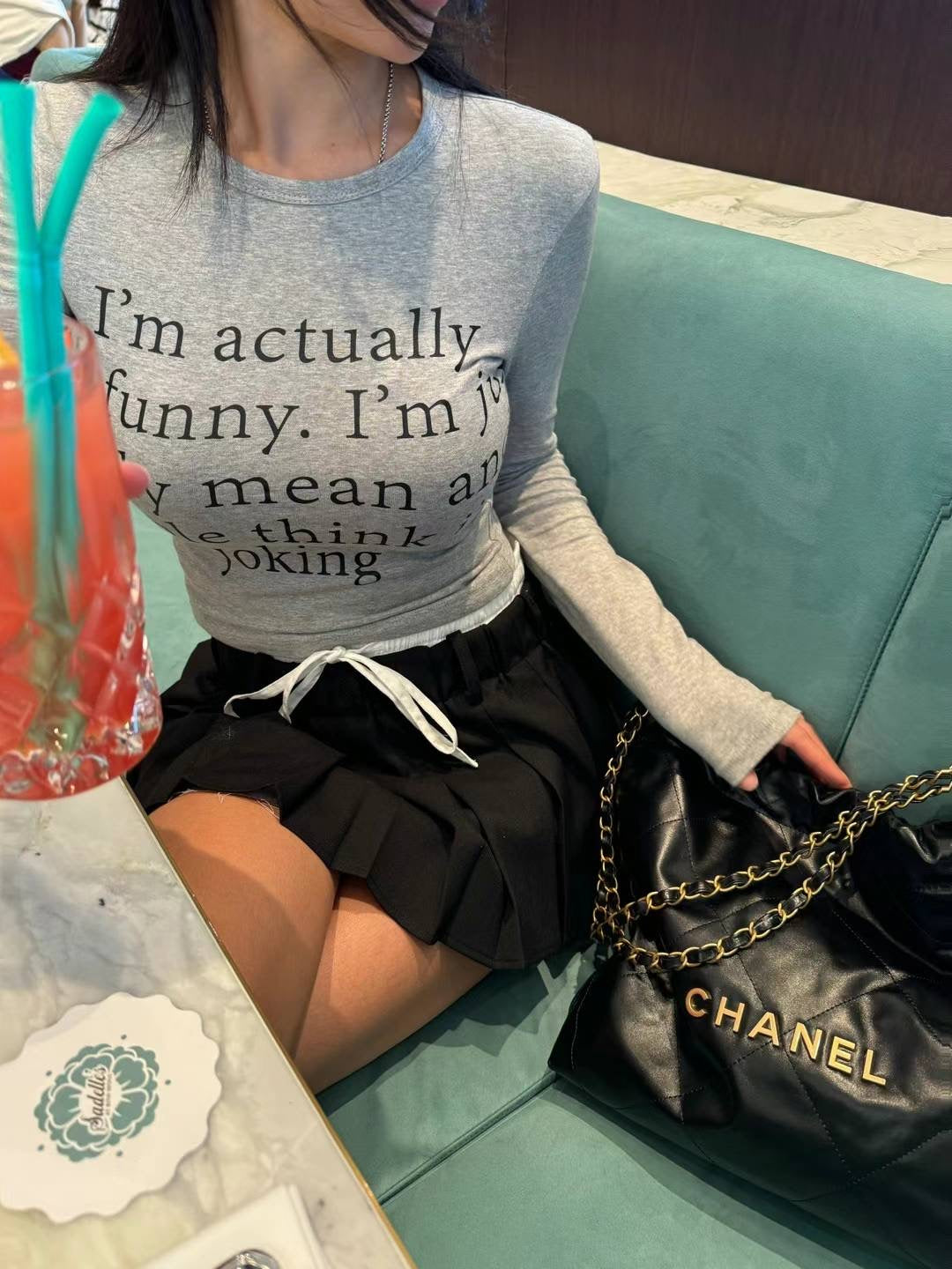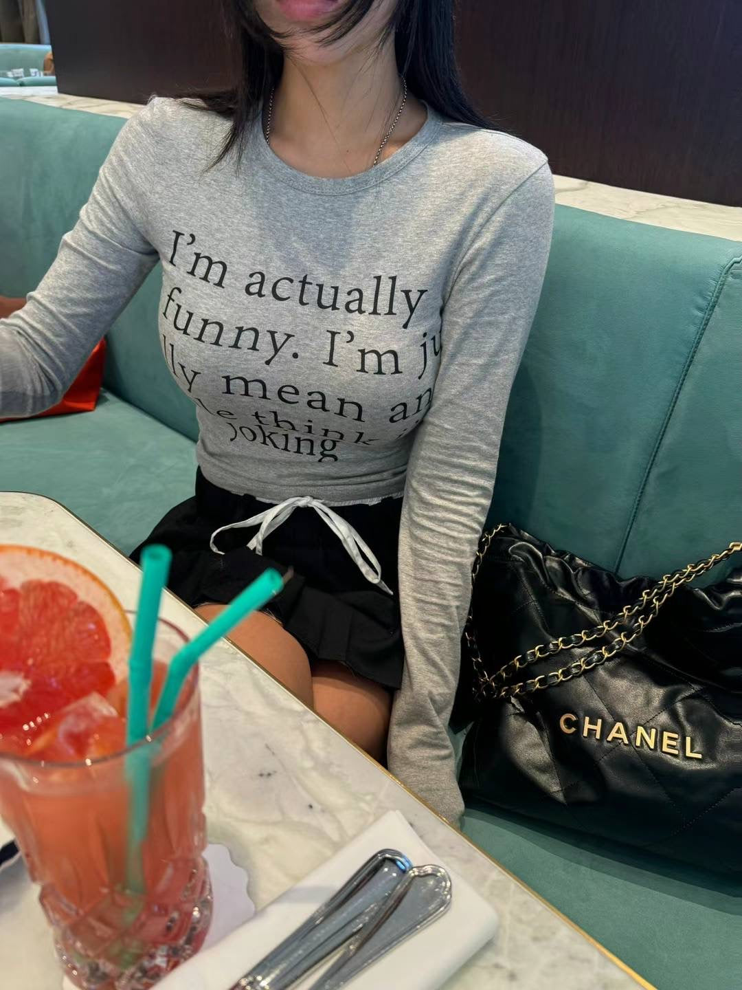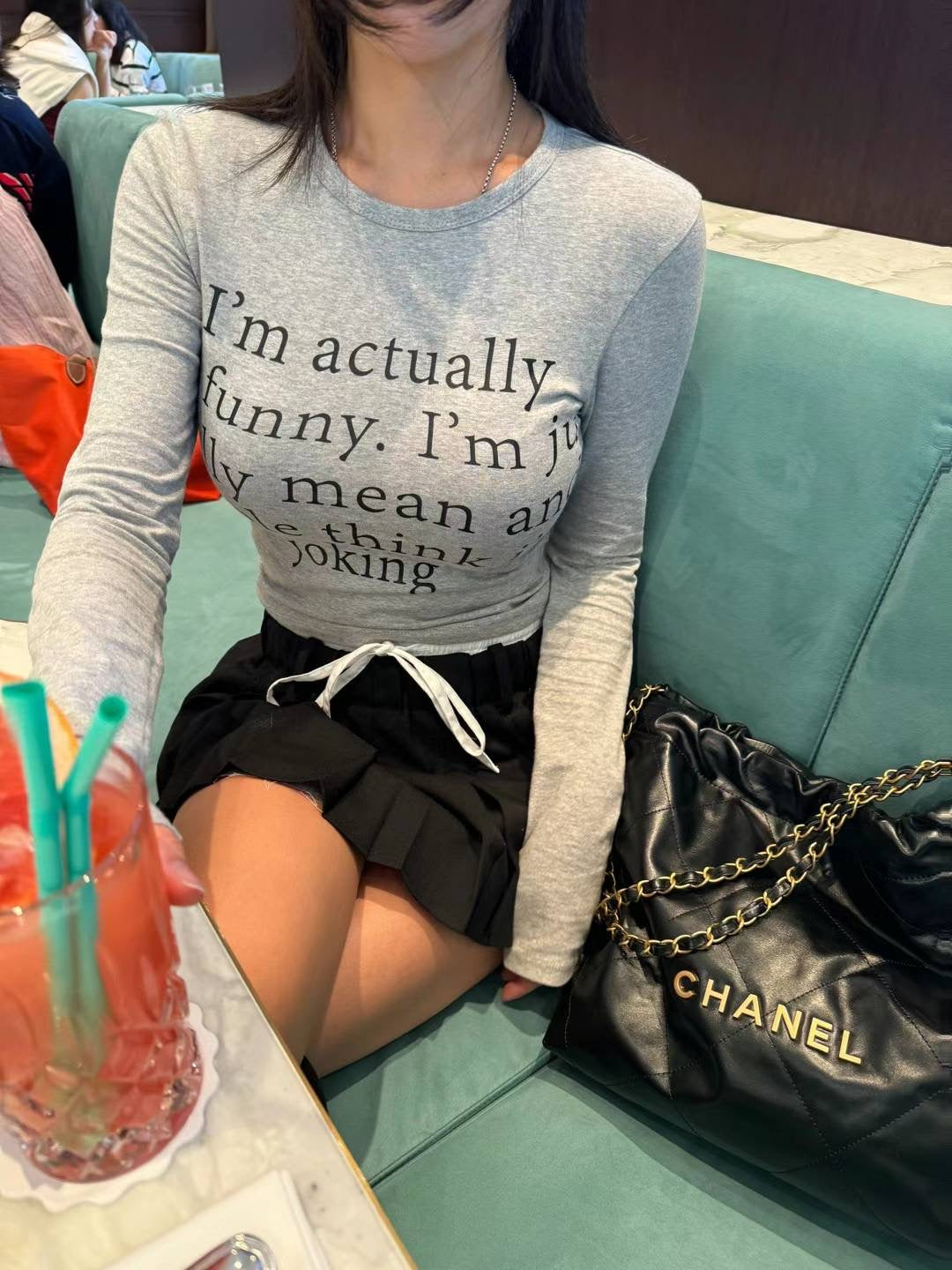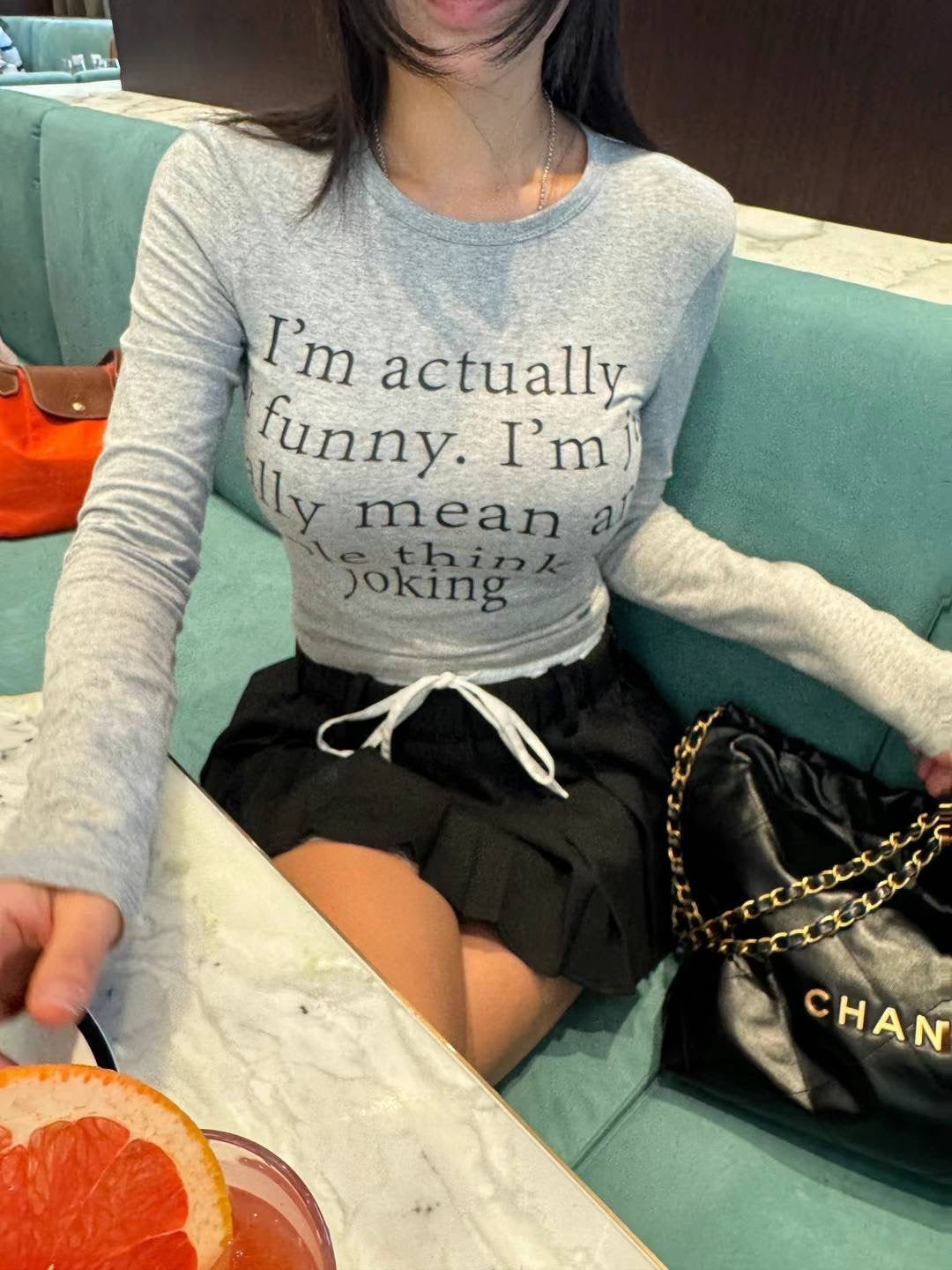 KOREAN COLLECTION 2501 圆领字母印花长袖打底+裙子