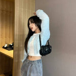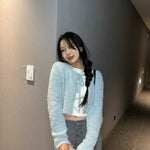 KOREAN COLLECTION 2501 圆领毛绒短款开衫