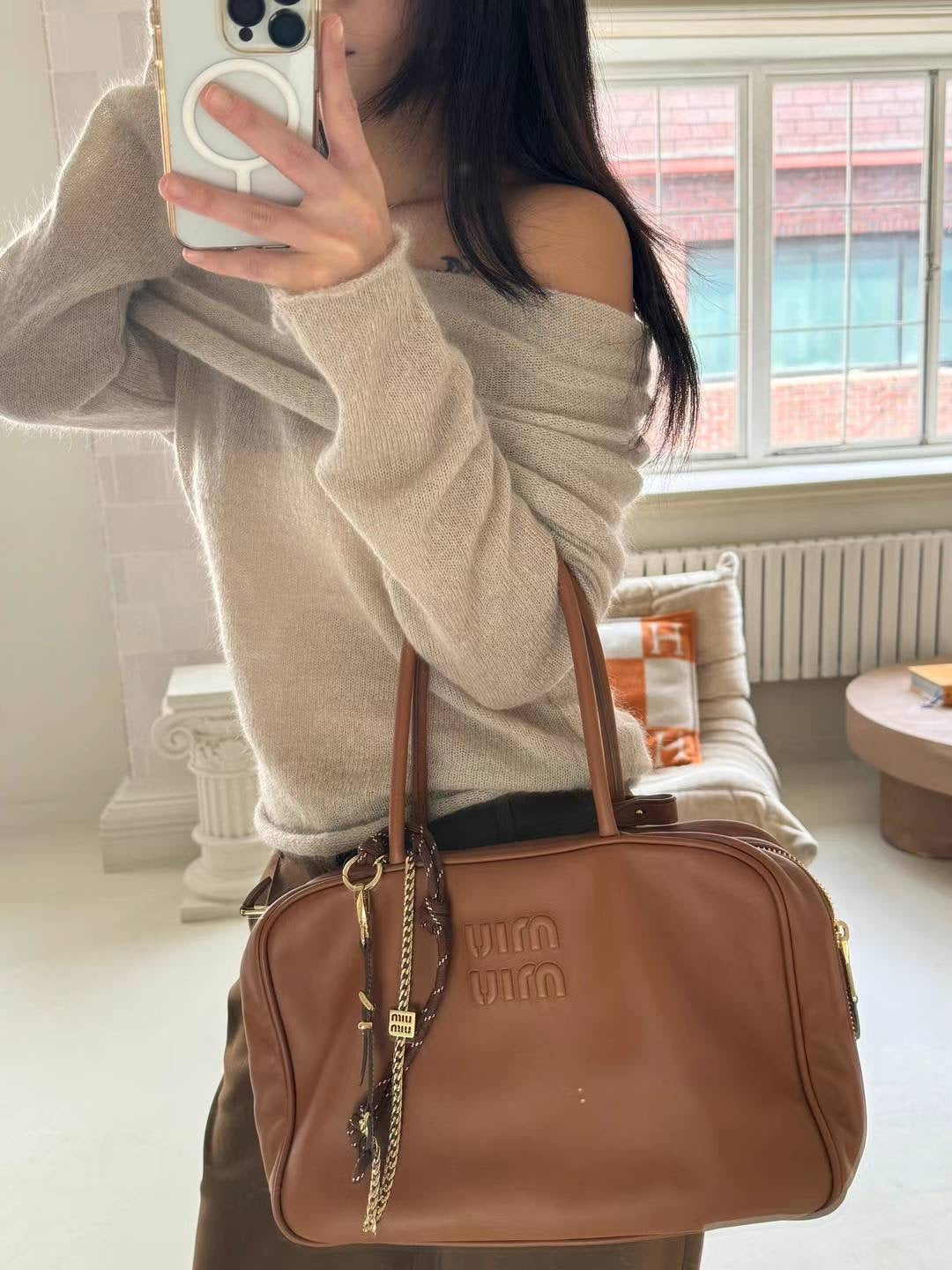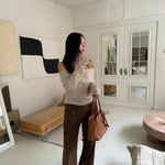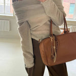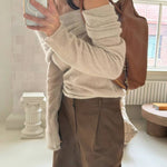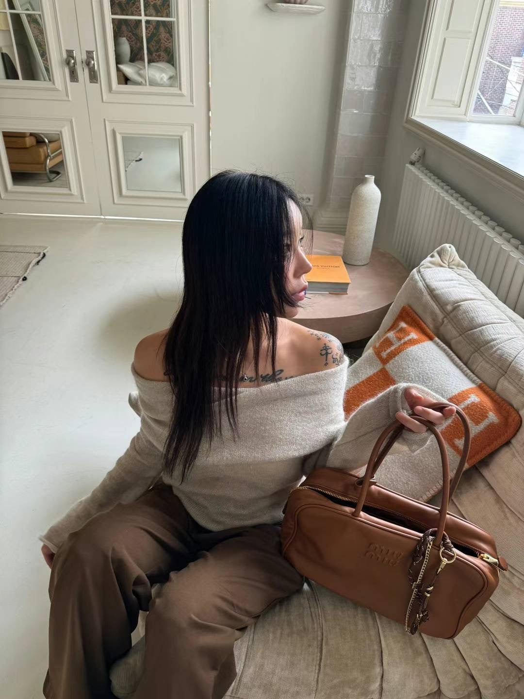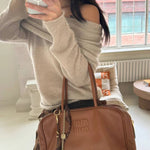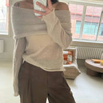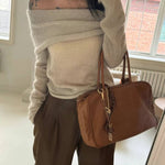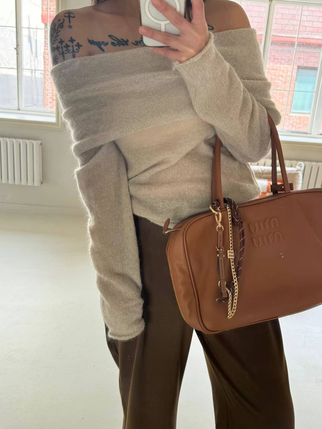 KOREAN COLLECTION 2501 纯色针织一字领上衣 浅咖