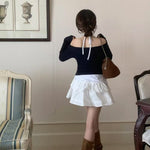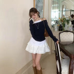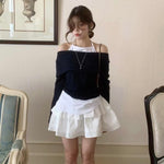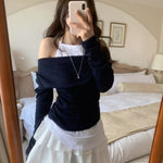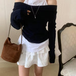 KOREAN COLLECTION 2504 一字肩挂脖长袖上衣 藏青